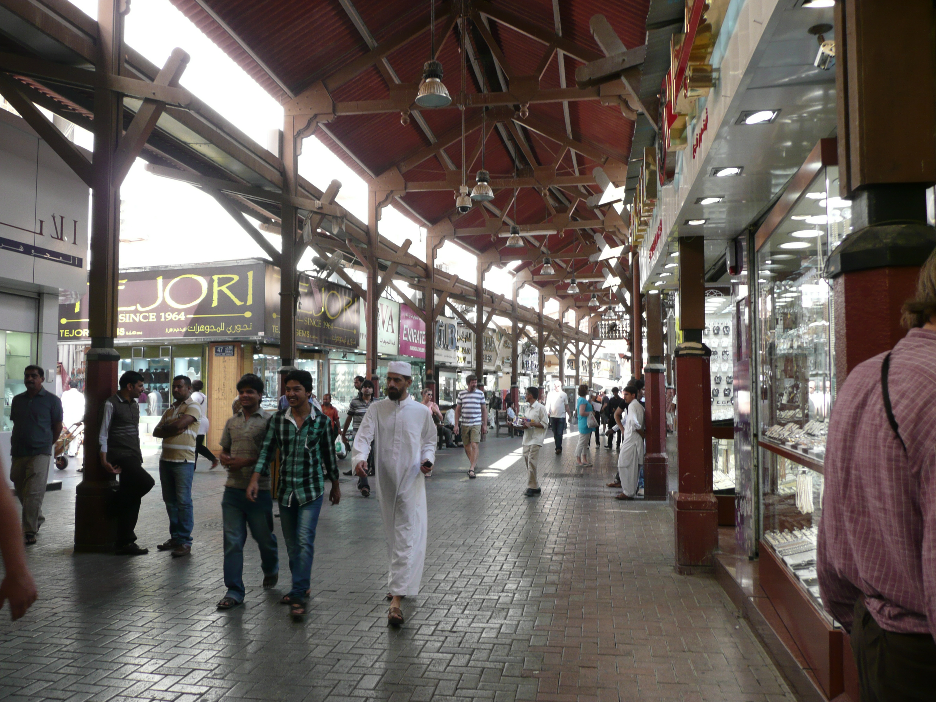 I looked around the souk. Window displays full of gold. Also, a lot of dodgy looking men suggesting I might like to follow them to buy a fake watch or designer handbag. I didn’t. The whole souk seemed to have only men in it. Some wore European style clothing, some wore traditional white thobes (Arabic dress.) I saw very few women and they seemed to all be wearing full burqas and escorted by men.