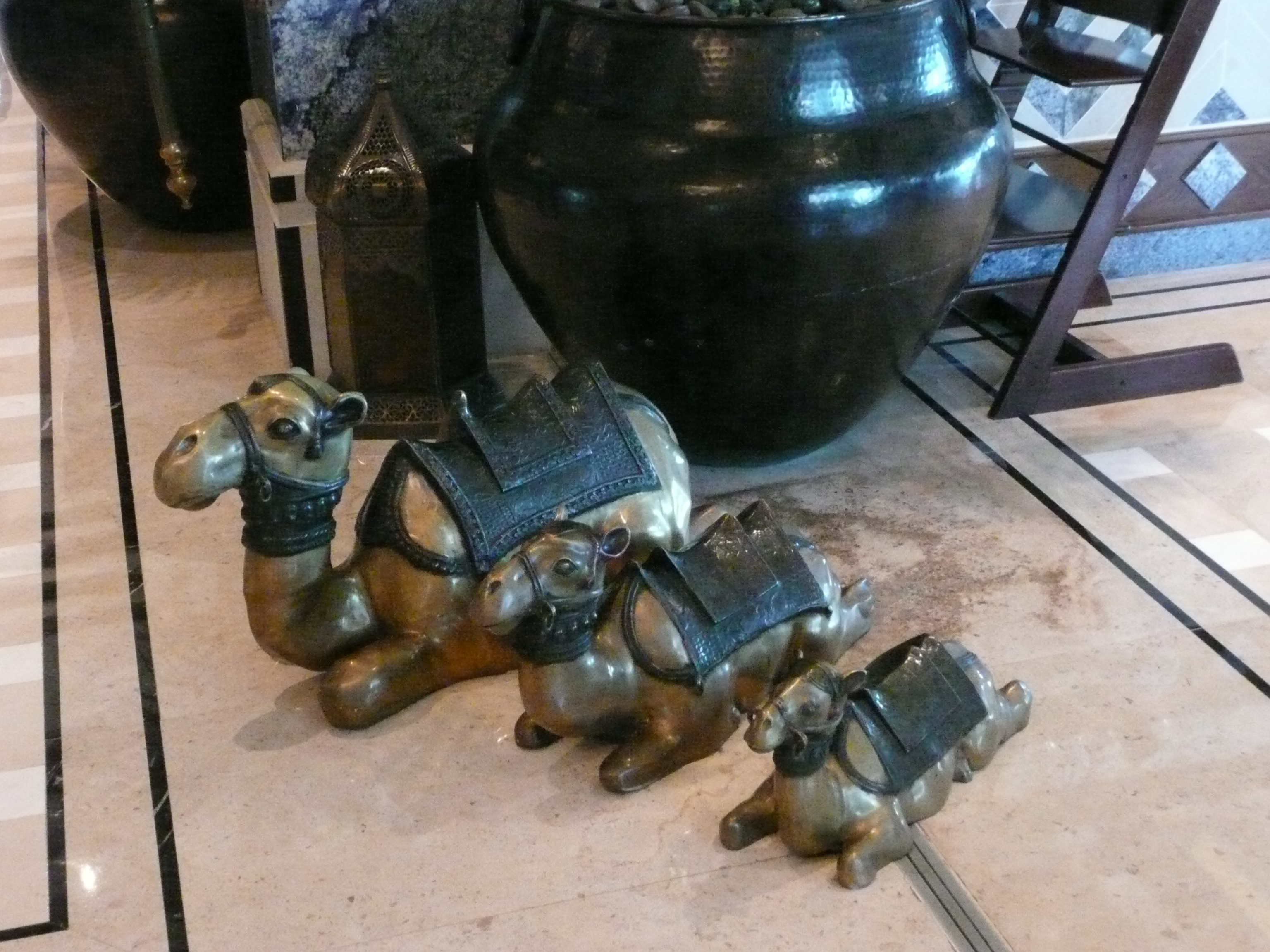 David finished work. We had dinner in the hotel, then got a taxi to the main part of the city. Saw the sky scrapers (but I think you had a better view from our hotel.) Went to a shopping street and I bought a cushion cover for my collection. Also bought some gifts and a weirdly shaped tea pot. I bought a white throbe and a ghutra (checkered headscarf) and egal (black rope you tie scarf with) for the dressing up box at home.