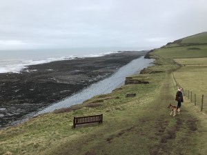 We had a quick lunch in John’s Cafe (best cafe in the world). Then we drove to Abbotsham, which is sort of attached to Westward Ho. We parked near the cliff, on the edge of a caravan park, and set off for a walk.