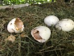 Chicken eggs take exactly 3 weeks to hatch. Duck eggs take exactly 4 weeks to hatch – the cheeps were heard after 3½ weeks. So I had no idea what it was, duckling or chick?