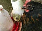The mother hen was a bit perturbed when her ‘chick’ insisted on climbing into the water drinker, rather than just drinking from it. I fear she has a few water related surprises ahead. And she’s going to be very disappointed when her chick can’t fly this time next week. But so far, she’s doing brilliantly.
