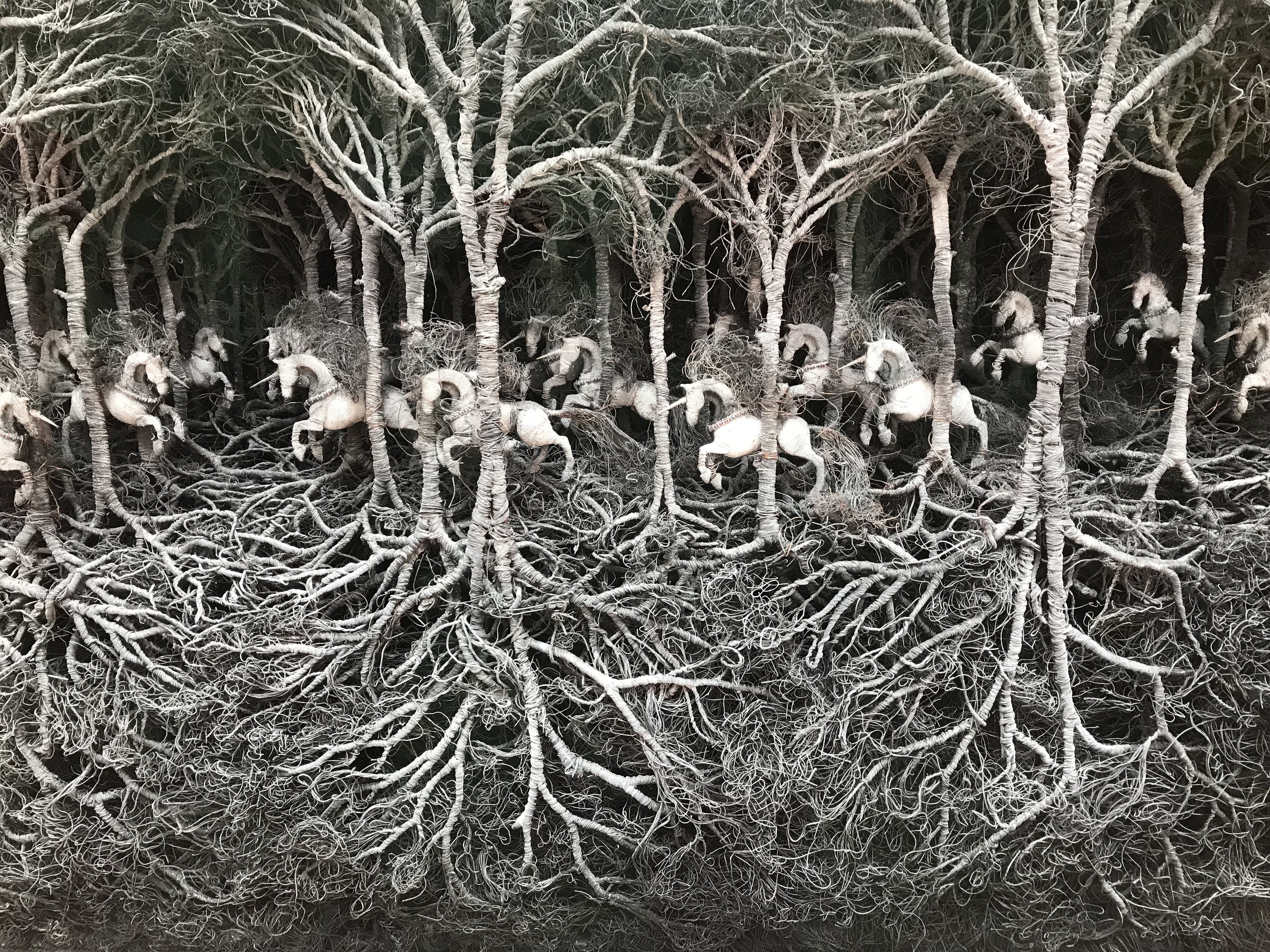 This was my favourite. Unicorns, galloping through a forest, all made from twisted wires. It was beautiful, a whole story.