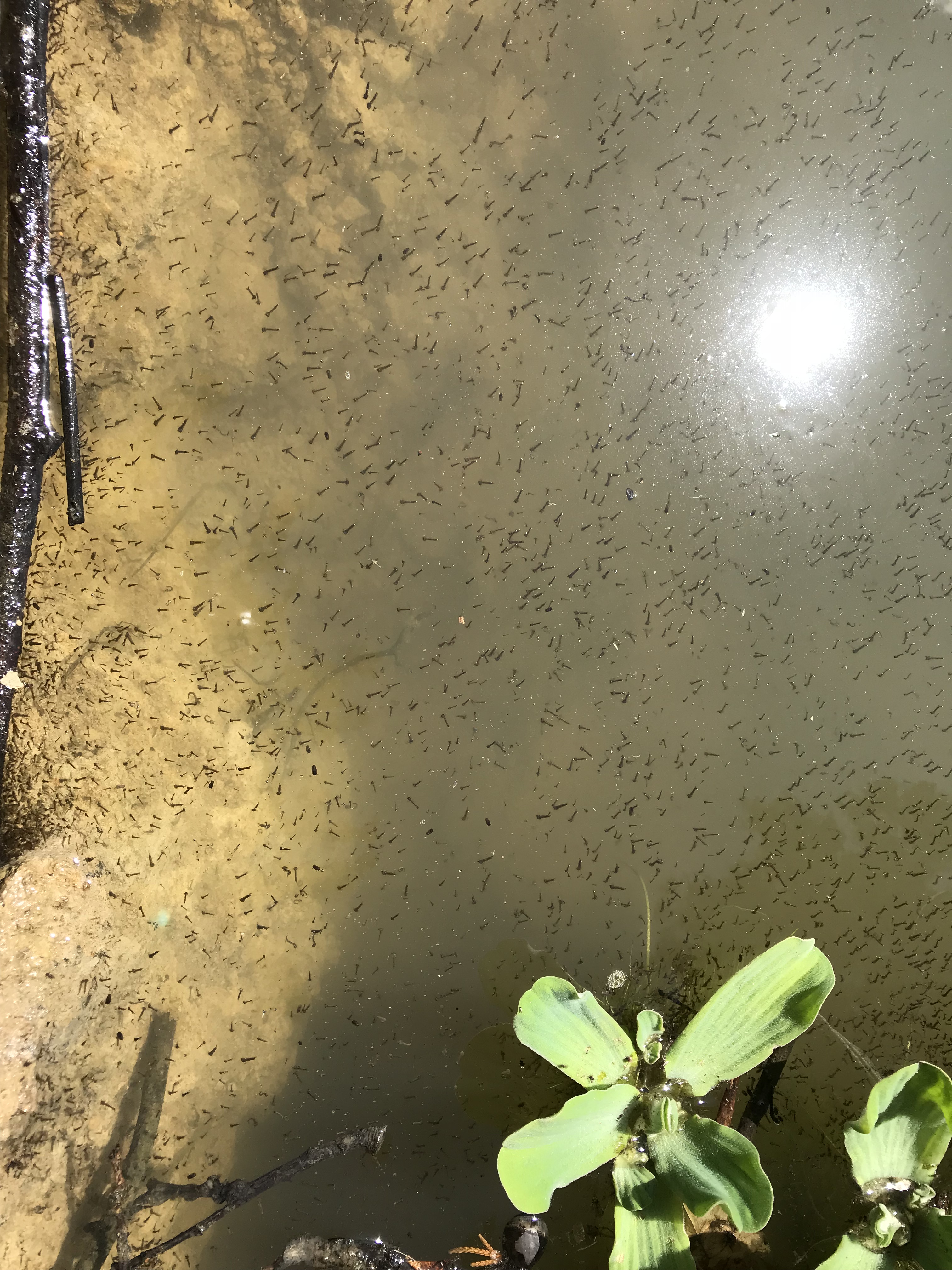 However, one thing that’s also growing well without the ducks to eat it, is mosquito larvae. The pond is crawling with them. Completely awful. I think every mosquito within a mile has been looking for water to lay in, and a nice new pond with no ducks seemed like a great place. We needed to get rid of them quickly, as once they develop into mosquitoes, they will be a right nuisance, and I don’t think we have enough bats in the nearby trees to eat them all.
