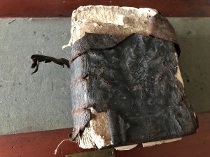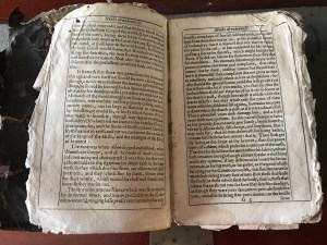 My family has an old book. We have had it for years, and I have never really taken any notice of it – I thought it was an old Bible. But recently, James happened to see it, and became fascinated with it, and I realised that actually, it was rather special. Even if it has no financial value (it is in terrible condition, my father even took with him on a trip to the US once, and showed it to a whole congregation of people!) it certainly has historical value. Let me show you.