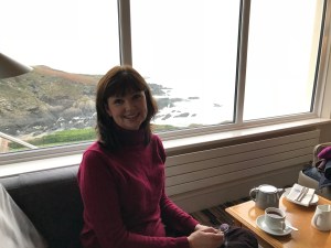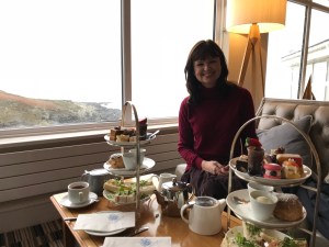 At 3:30pm, we had afternoon tea at Watersmeet Hotel near Woolacombe. This was a Christmas gift from Husband, and as a great lover of cakes and sandwiches, I was rather looking forward to it. I had been given a voucher, showing a dining room, but we were taken to a lounge area for the tea. (It turns out Husband had made the voucher himself, and downloaded photos from the hotel’s website, but tea is not served in the dining area!) The hotel is on the cliff edge, looking down into a bay, and we sat and watched waves crashing over the rocks.