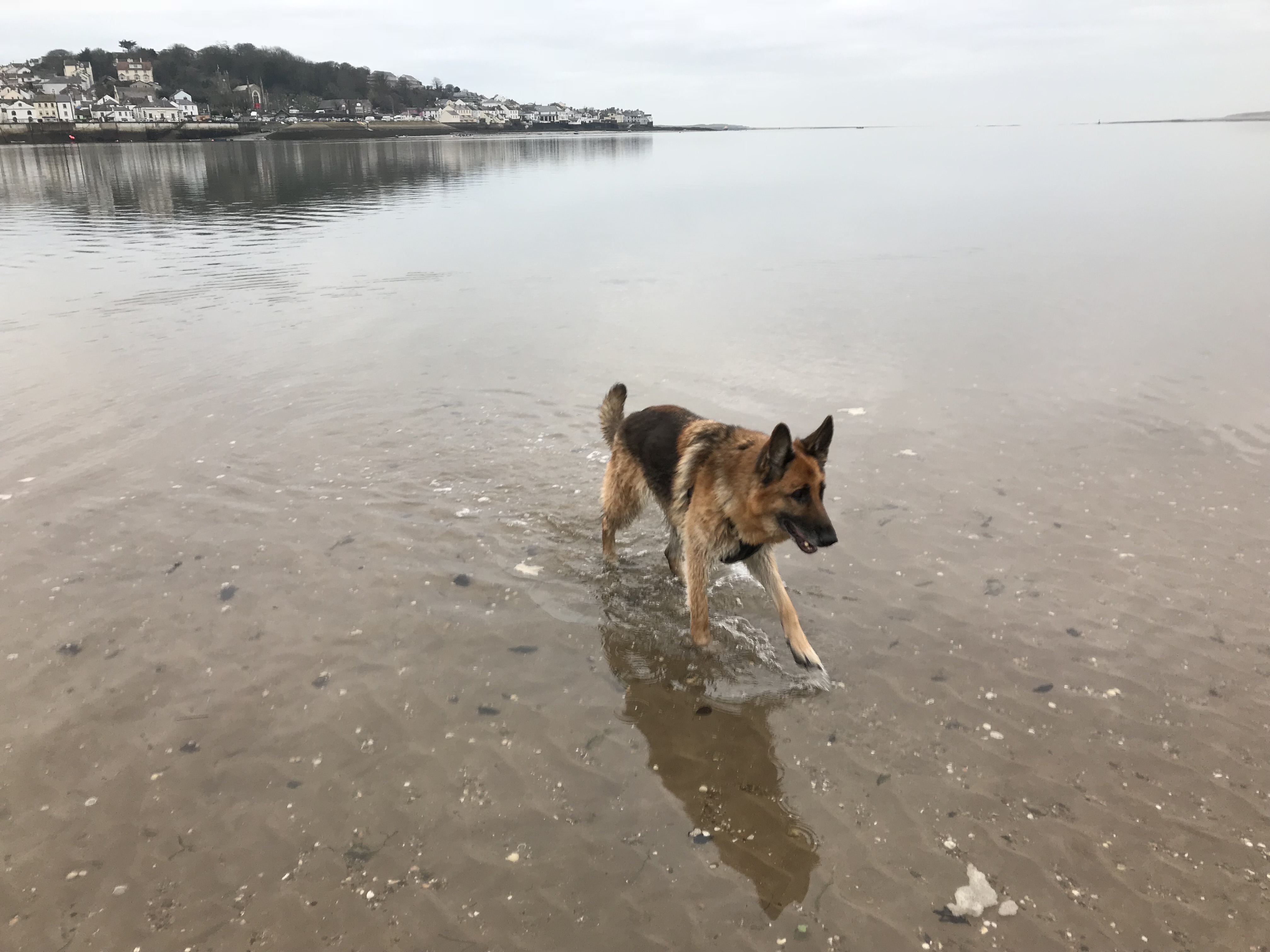 Walked back to Instow and had coffee at John’s Cafe, which is the best cafe in the whole world (except that it has rather uncomfortable seats, and is a little pricey). Kia lay under the table while we had coffee, and then waited outside while Husband bought some juice. They didn’t have any orange juice (too posh) and the apple juice was all proper, locally produced apple juice, which was rather bewildering for Husband, as he had to choose which variety of apply he wanted. He chose cox’s apple juice, which is pretty horrid unless you like cox apples (which I don’t).