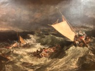 There was a rather spooky painting of a girl, whose eyes followed us round the hall, and an excellent painting of a boat in a storm.