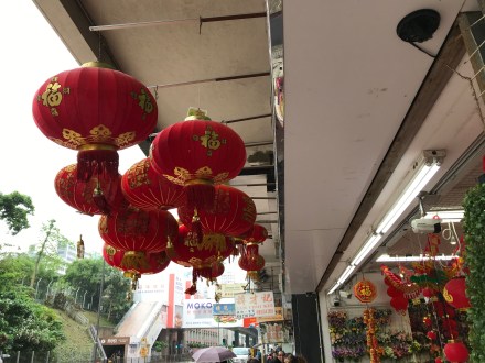 There was also a fruit market. Groups of men lurked at the back, playing cards or mah-jong, while the women did all the work. The fruit looked amazing, fresh oranges and strange spikey fruit and bright dragon fruit and bananas still attached to stalks. I would have liked to buy some bananas, but the thought of trying to communicate in Cantonese, and the effort of working out the money, was too much. Instead, I bought an unsatisfactory looking banana from a 7-Eleven round the corner.