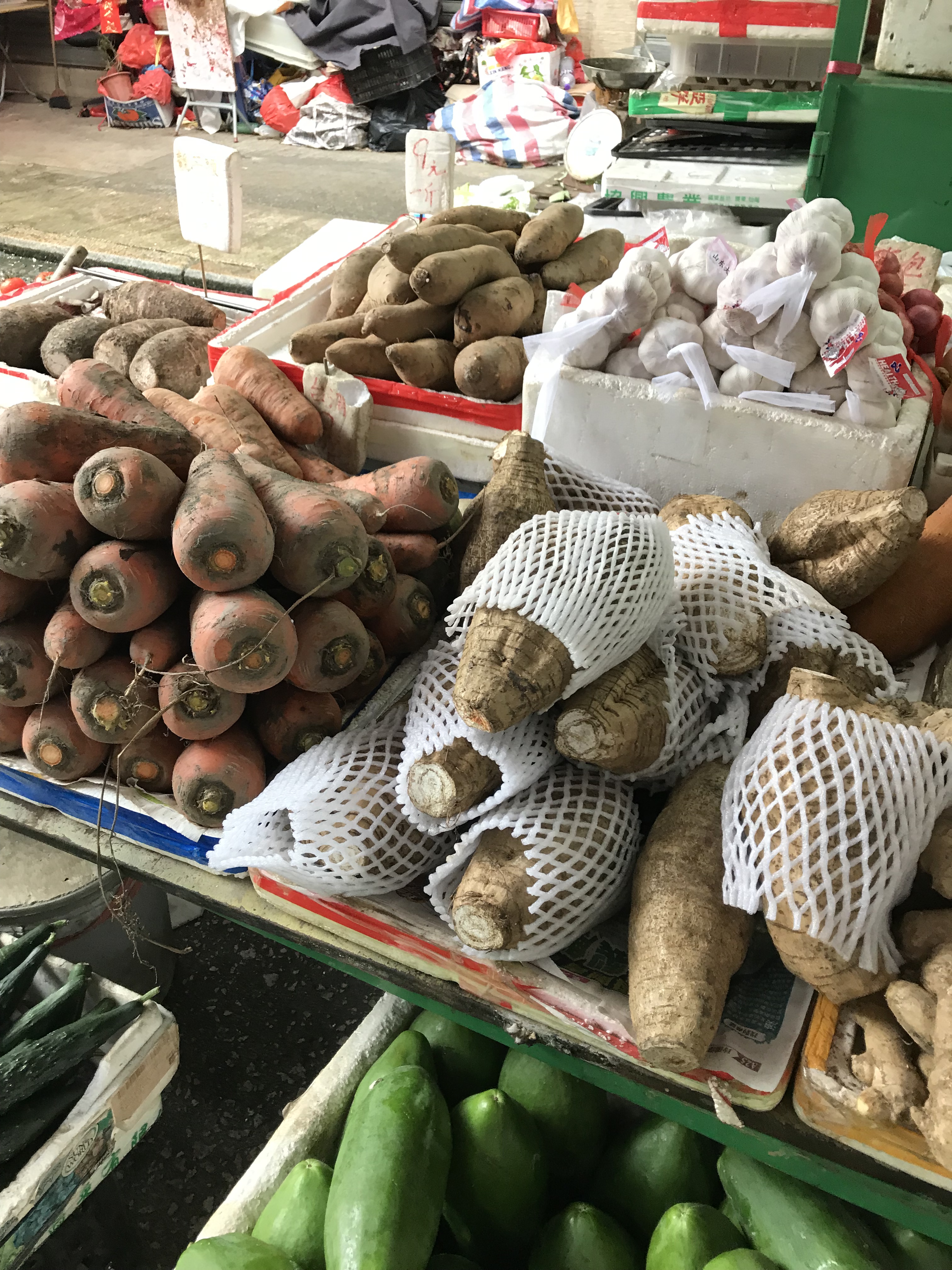 Set off for the market. I had managed to coincide my time (Anne Time: 10:00) with the rest of Hong Kong’s lunch hour (HK Time: 13:00) so the shopping mall I walk through was jammed full of people trying to buy lunch. I made it, eventually, to the outside, to find it was pouring with rain. Put up my umbrella, and set off.