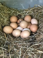 To recap: I bought some eggs from Ebay, and put most of them in the incubator, and left 3 outside, with a whole lot of infertile eggs, in the hope that a hen would go broody. For a very long time, the hen simply added to the nest, but was completely disinterested in sitting. This was a shame, as chicks are quite a lot of hassle to raise, and if the hen was broody she would do a lot of the work for me. I decided that perhaps the hen also remembered how much hassle it all was, and so was deciding to not risk it a second time. I left the eggs where they were, and went to Hong Kong for two weeks.