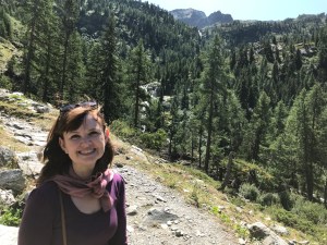 La Thuile feels like a small town at the bottom of the mountains, but actually we climbed quite high before we reached the town. The air is clean and cold and whichever direction you look, there are amazing views. Mountains stretch up on one side, their peak in the clouds, behind you is a mountain with white snow icing the top, on the other side is a mountain pasture dotted with flowers, in front of you is a house made of wood and looking exactly like a musical-box so you feel you could almost lift the roof to hear the music playing. It is, I think, the most beautiful place I have ever visited.