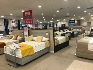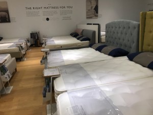 The next shop we went into had a good range of furniture, and we were offered help (which we didn’t, at that stage, want). We tried a few beds, and discovered that beds vary a lot in softness, and some are like sleeping on marzipan and others are so hard, you may as well sleep on the floor and save the money. There were mattresses so thick that they doubled the height of the bed, and others which looked more like a thick duvet. You could buy two slim mattresses, and zip them together to make a double, which would suit the couple when one likes marzipan and the other prefers floor. Bea was very decided on her views of sleigh beds and wooden headboards and cushioned headboards. I found some lovely bunk-beds, reminding me of when she was little, but she was not even slightly interested in those. We then needed some help, and a salesperson came, but she looked cross. I felt that she thought we were wasting her time, and that really the answers to our questions were very simple, and we should have done more homework. I didn’t like her at all. Customers like to be smiled at, even if you think they are annoying! We left.