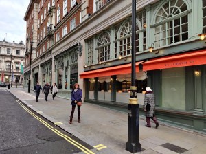 My Monday was great fun. It began with breakfast near Fortnum and Mason. Have you ever been? The best place for breakfast (I think) is not one of the restaurants inside the actual shop, but at the restaurant hidden at the back, 45 Jermyn Street. It has orange awnings, and a rotating door, with a man who stands outside to greet you. Inside, there are comfy orange seats (I do like a comfy seat!) and a desk where they take your coat and show you to the table.