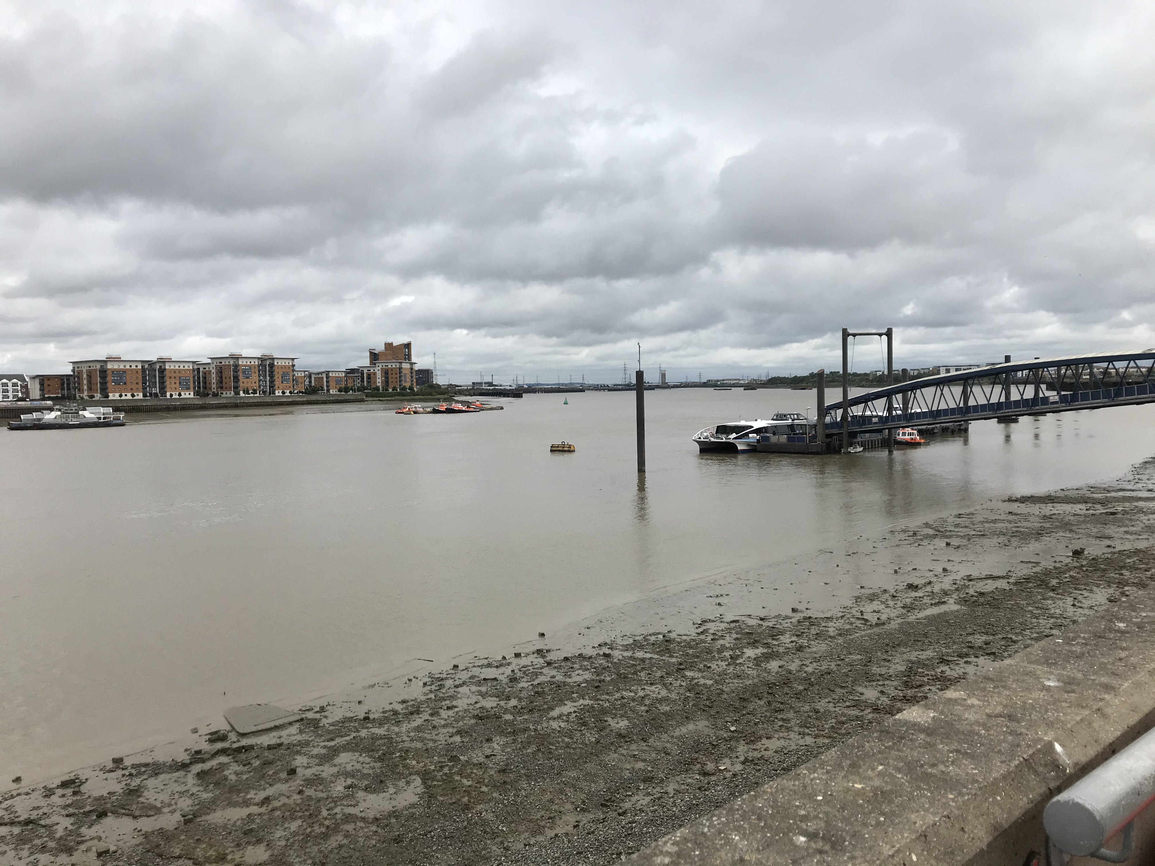 Footpaths run along the river. Plenty of places to peer down at the mud, looking for treasure. (But only seeing mud, and rubbish, and some muddy birds.)