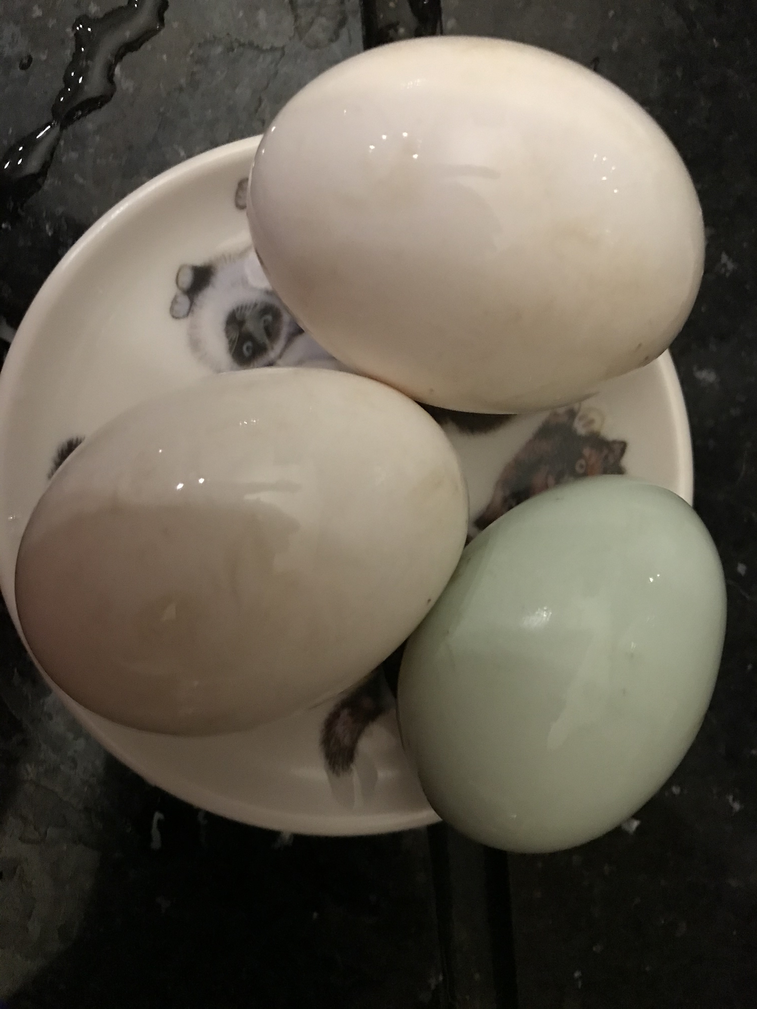 I have a few chicken-related things of interest to tell you. Firstly—very exciting news—the hens that I bred from my longbar cockerel and leghorn hen are now laying, and the eggs are blue. I was so hoping they would be, so I am very happy!