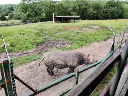 The gorillas have a brilliant enclosure full of swings and ropes and barrels. Unfortunately they mostly preferred sitting inside their warm house, so we only saw two fat males, who were busy picking insects out of the straw. Tasty snack. Port Lympne is famous for its gorillas, and on better days we have watched whole families play. The zoo breeds them, recreates an environment similar to the wild (but with fences) and then releases them. (Not locally. Obviously.)They have reintroduced about 70 gorillas back into the wild, and are busy breeding more. When they’re out, you can spend hours watching them, they’re fascinating. Empty cages are less fun.