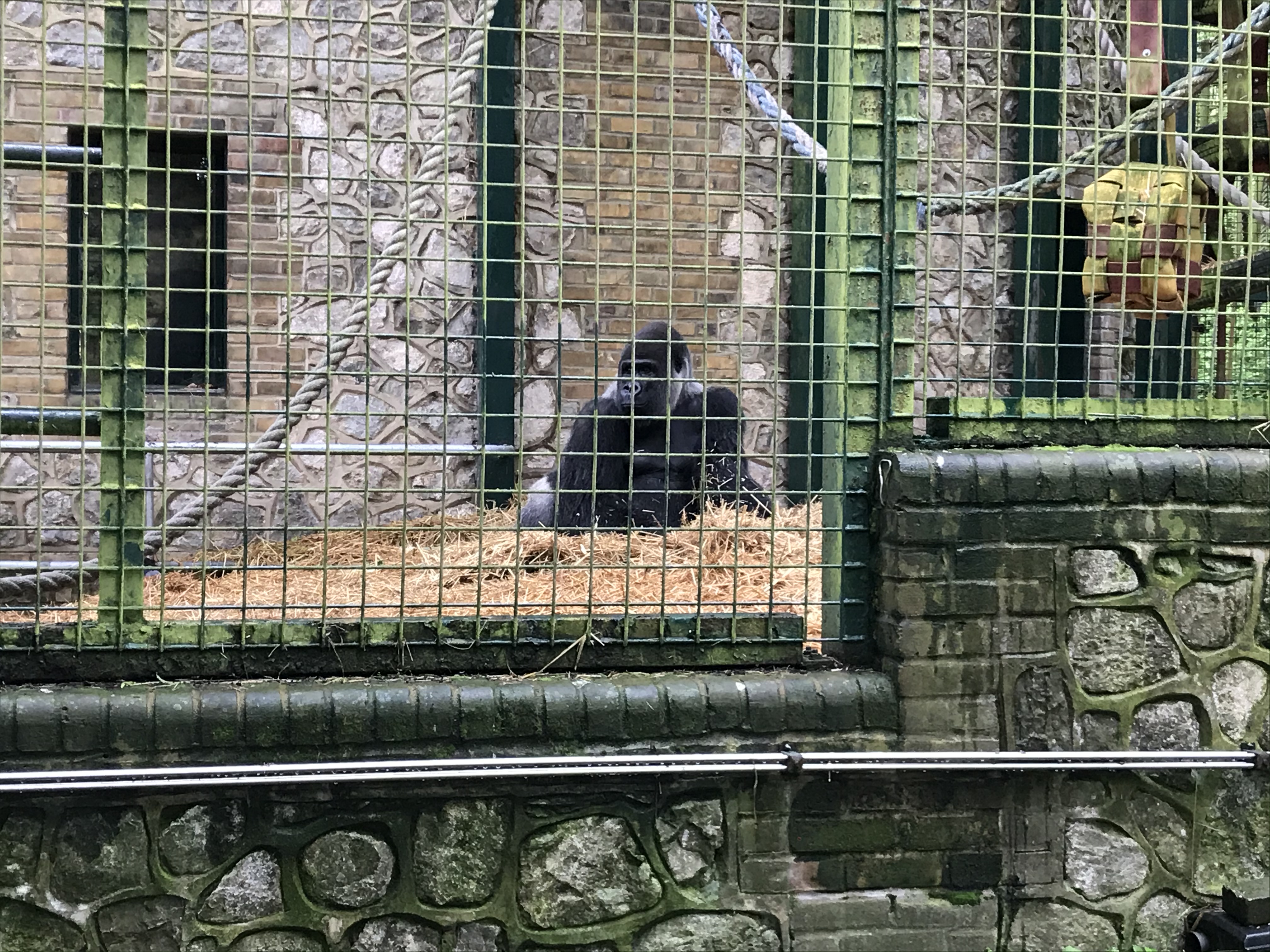 The gorillas have a brilliant enclosure full of swings and ropes and barrels. Unfortunately they mostly preferred sitting inside their warm house, so we only saw two fat males, who were busy picking insects out of the straw. Tasty snack. Port Lympne is famous for its gorillas, and on better days we have watched whole families play. The zoo breeds them, recreates an environment similar to the wild (but with fences) and then releases them. (Not locally. Obviously.)They have reintroduced about 70 gorillas back into the wild, and are busy breeding more. When they’re out, you can spend hours watching them, they’re fascinating. Empty cages are less fun.