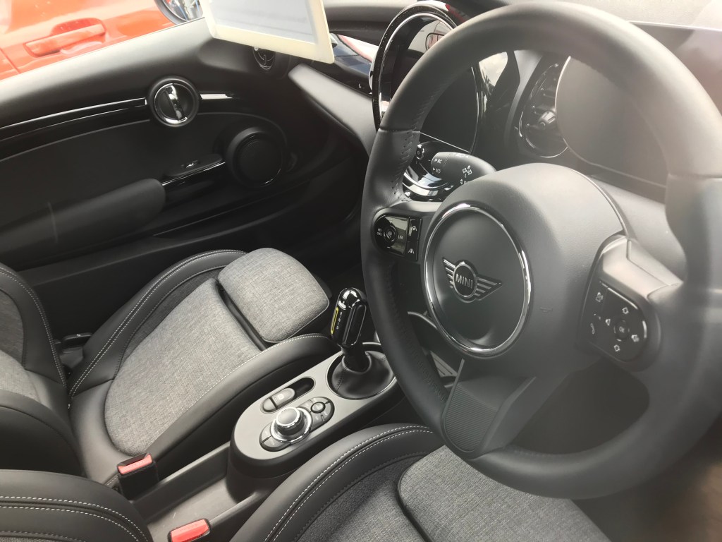 The steering wheel was a nice sporty size, in leather. The seats are only available in fabric unless you pay for a higher spec, which is a disincentive for putting large dog in the back (we decided not to include her in the test-drive trip, which was probably wise.) The higher spec also includes an ugly sunroof and fancy wing-mirrors, and front parking sensors. However, the higher spec also offers an automatic parallel-parking feature, which would be very attractive and save me many hours of humiliation (why are there always people watching when I attempt to parallel-park?) The higher spec is an extra £4,000 though, so not cheap (or worth it, in my opinion).