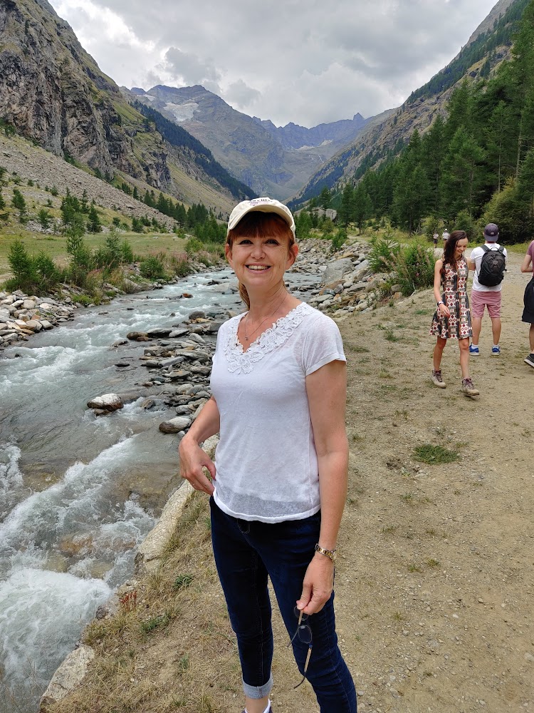 You will remember from last week’s blog that we went to Italy for a couple of weeks at the beginning of August (returning for my niece’s wedding on the 18th, but you will have to wait until next week to read about that!) We stayed in LaThuile, which is a ski resort in the winter, and in the summer is a village of musical-box log cabins, and window boxes full of geraniums, and hot, hot, sunshine. The whole family plus partners came, and we had a happy time of reconnecting.
