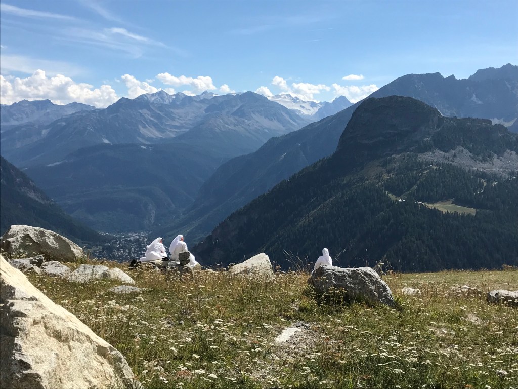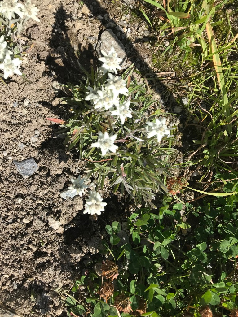 It was such fun. First we drove to Courmayeur. Well, strictly speaking, first we went to the local Pharmacy in a panic because we read on the website that it was essential that we wore the correct type of face-mask—but after that we drove to Courmayeur. We followed signs for the cable-car (the funivia) and there was plenty of parking underneath. Italy seems to do parking very well (either that, or we have been very lucky so far).