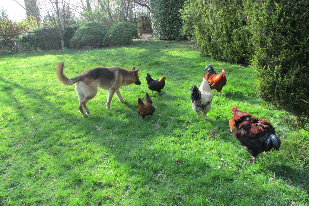 Today is difficult. There is so much to miss, even of a dog who had limited her world to the kitchen and garden. The kitchen is horribly empty. When I picked up the compost bin, there was no head turned towards me, waiting to see if I was going into the garden. Kia would watch, waiting until I actually put on my coat—so she could be sure I wasn’t going to trick her and shut her into the utility room—and then she would heave herself up, and totter to the door. We would walk up the garden together, the cats coming to greet her, and she would watch me as I fed the ducks and chickens. In the past, she would bark in warning if the chickens made a fuss and tried to fly near me (she hated them flying) but recently that was too much effort, so she just watched, checking.