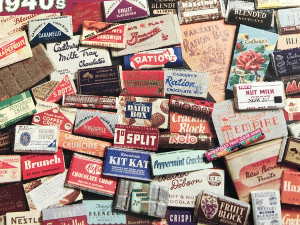 The other thing you don’t see so much of now are—complete change of subject coming, so brace yourself: some of the sweets I ate as a child! My mum is doing a jigsaw, and on the back are photos of sweets from the 40’s, 50’s, 60’s and 70’s. I will leave you with them—how many do you recognise? Fruit gums have always been my favourite, though I am also keen on a bar of Cadbury’s milk chocolate.