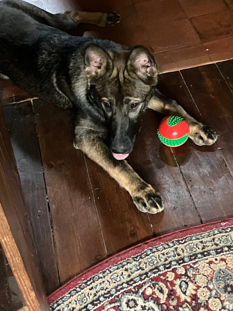 I am beginning to despair of ever being able to walk Meg on the lead. The last couple of times I have tried, when a car has passed, she has fixed on it and then been completely deaf to any attempts to break her focus, ending in a full-body lurch towards the traffic, which hurts me and nearly gets us all killed. It is deeply disappointing. We have contacted a man who has trained police dogs and therefore must be familiar with working GSD. Am hoping he can help, otherwise I really don’t know what to do. I am in despair.