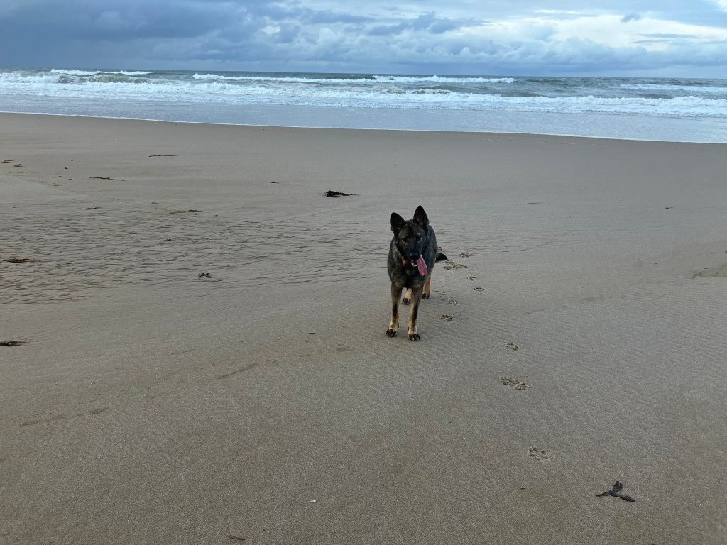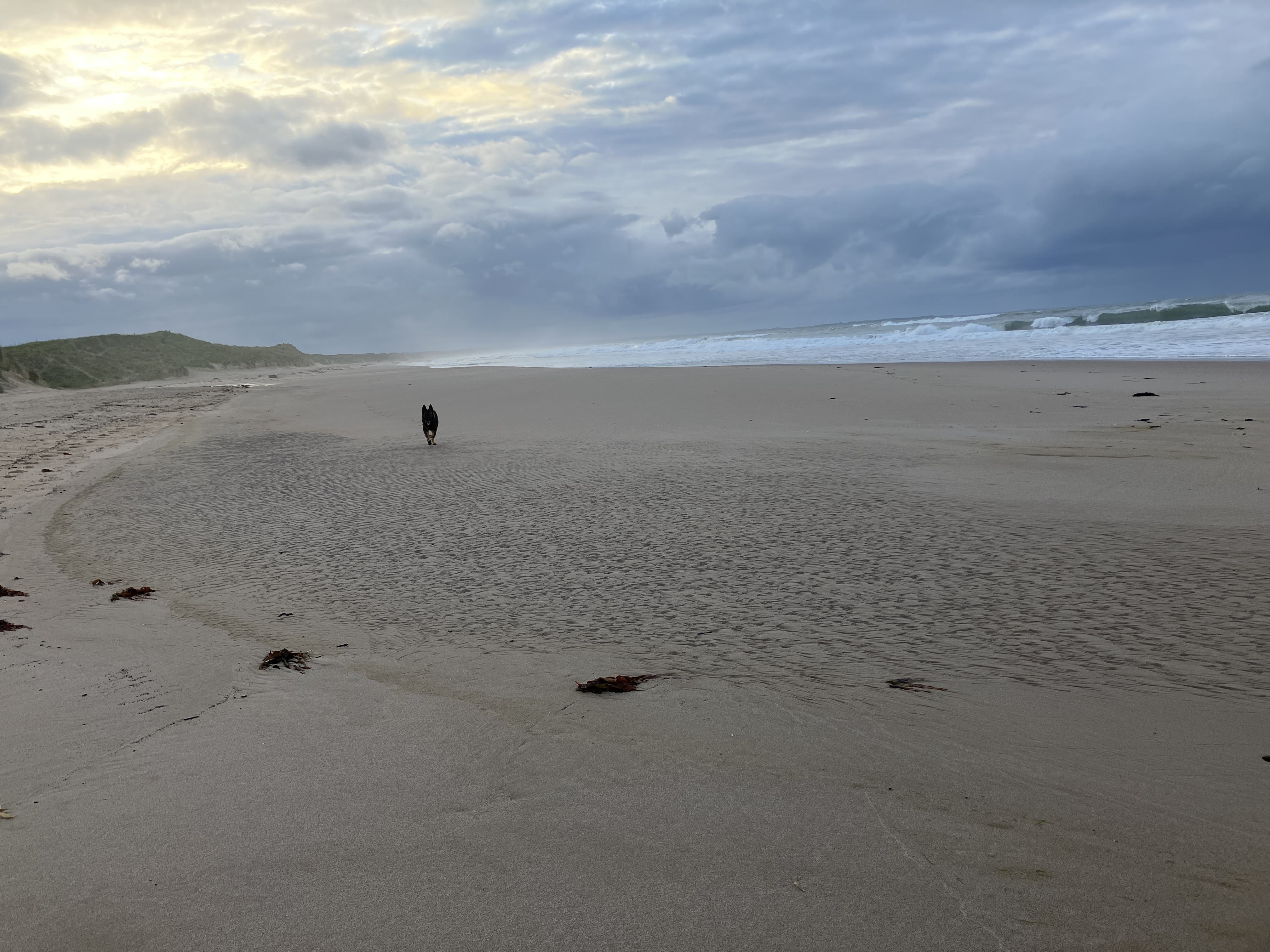 As there was a coast 5 minutes away, we put her back in the car and drove to Cresswell. Parked next to the road and walked through sand dunes to the beach. It was beautiful. The sky was heavy with rain, and no one else was on the beach. Sand stretched in both direction, huge waves billowed towards the beach, the grass on the dunes hissed in the wind. Most importantly, Meg made use of the facilities! Yaay! Back to the cottage.