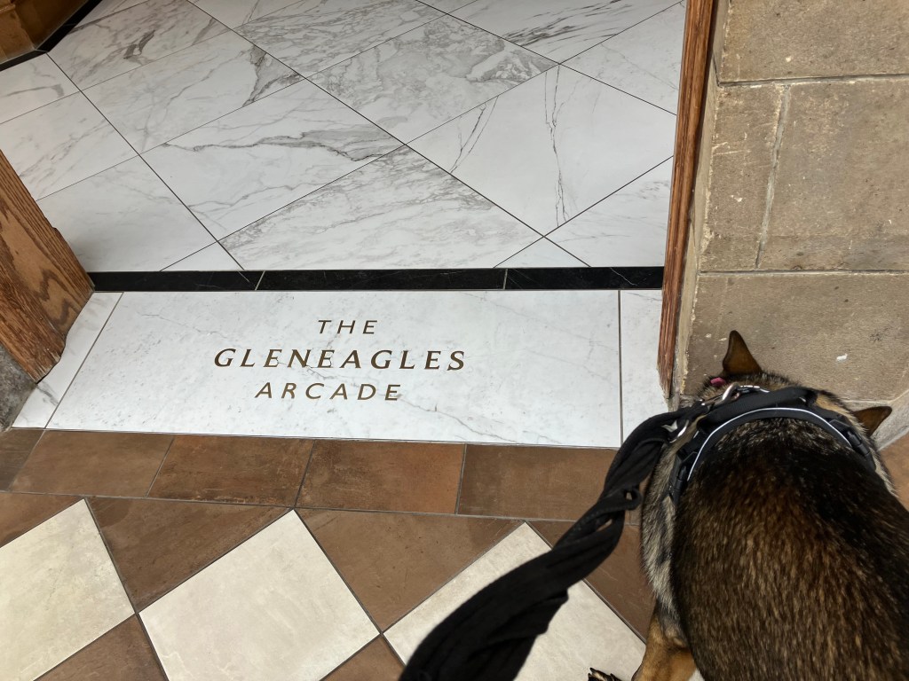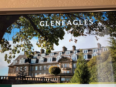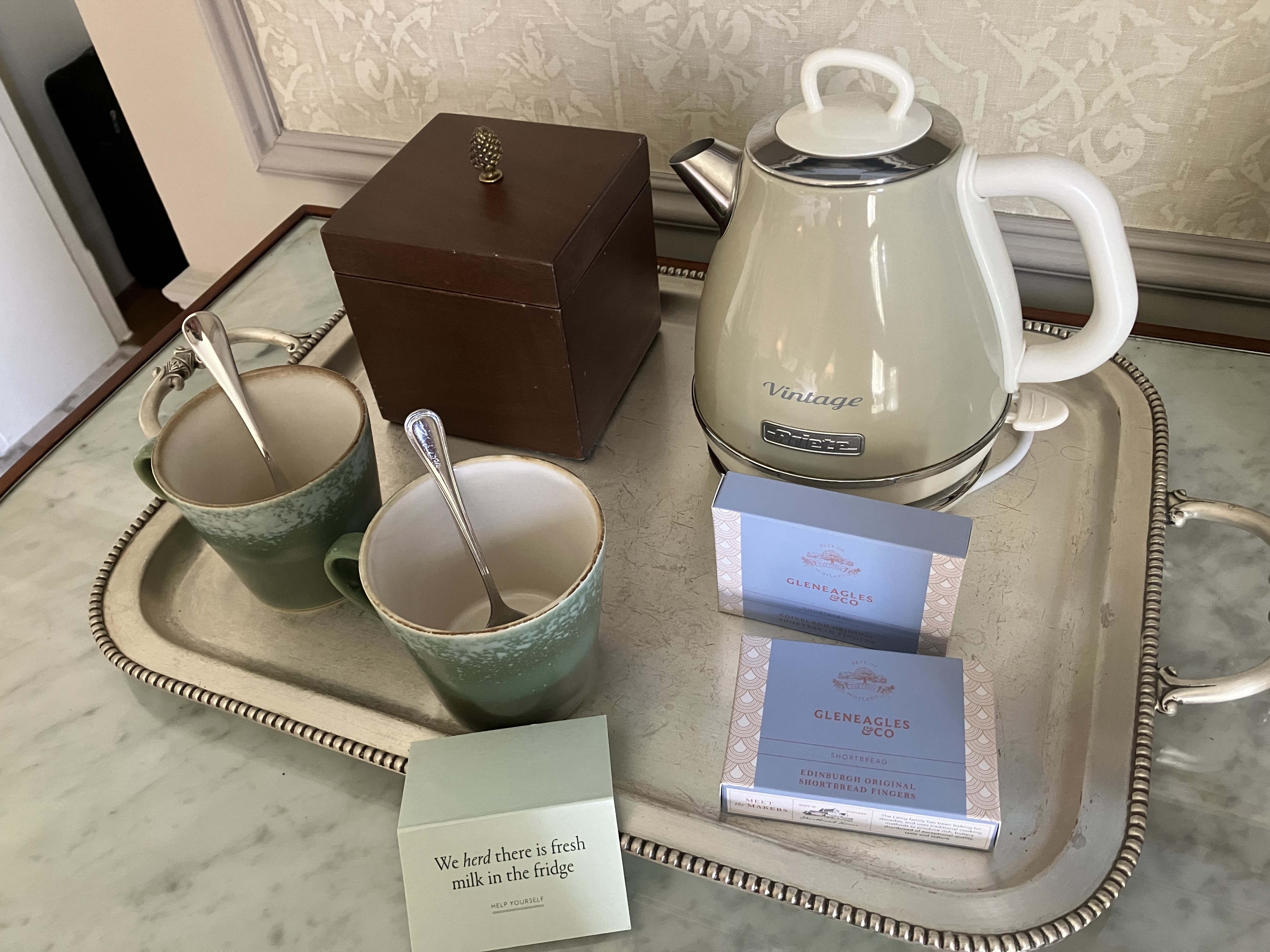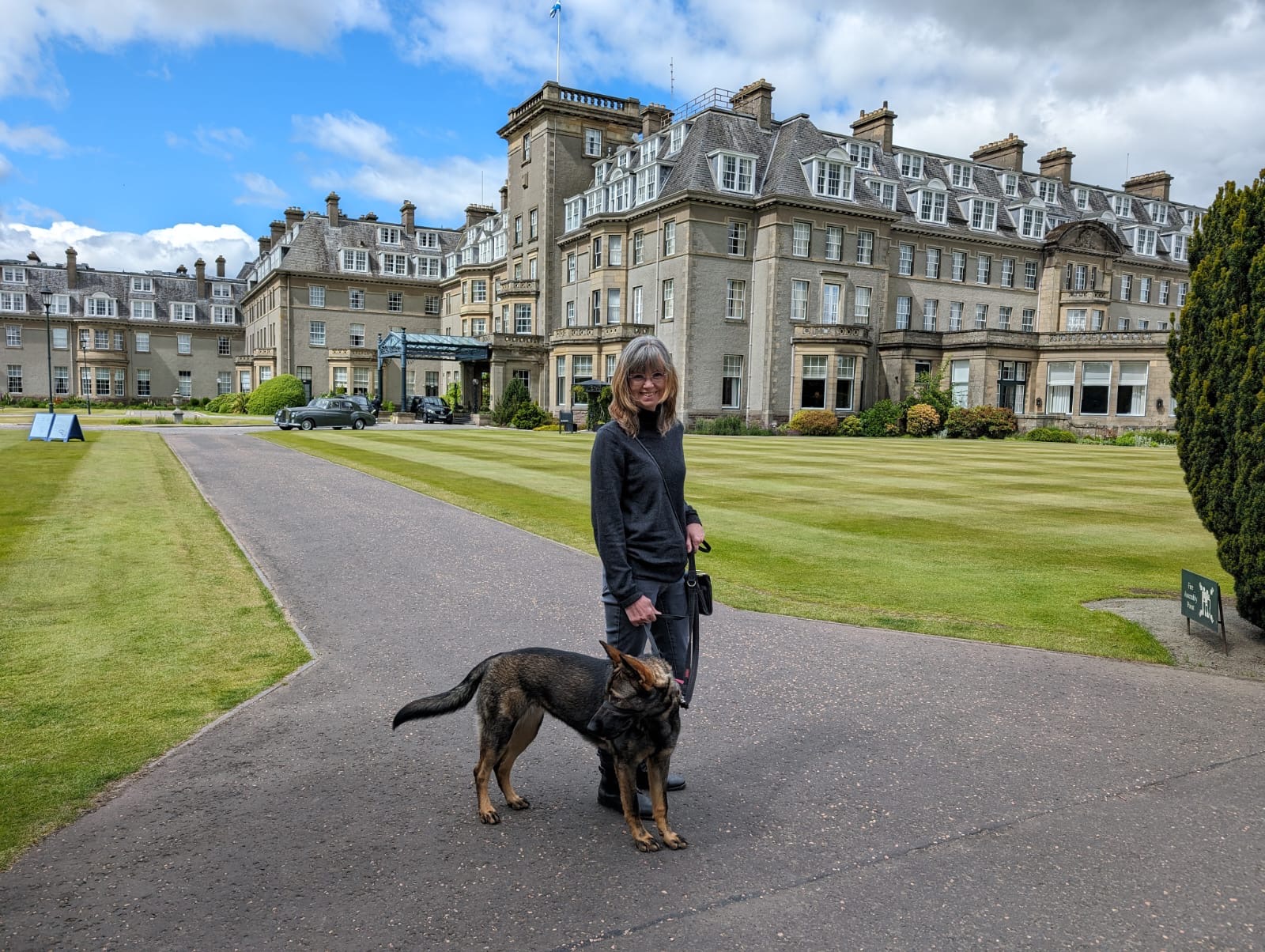 We stopped a couple of times during the journey, and Meg was very good—we were still on the A1, but it was quieter, and the stops were more peaceful. Early afternoon, we arrived at the Gleneagles Hotel, where Husband had a work conference.