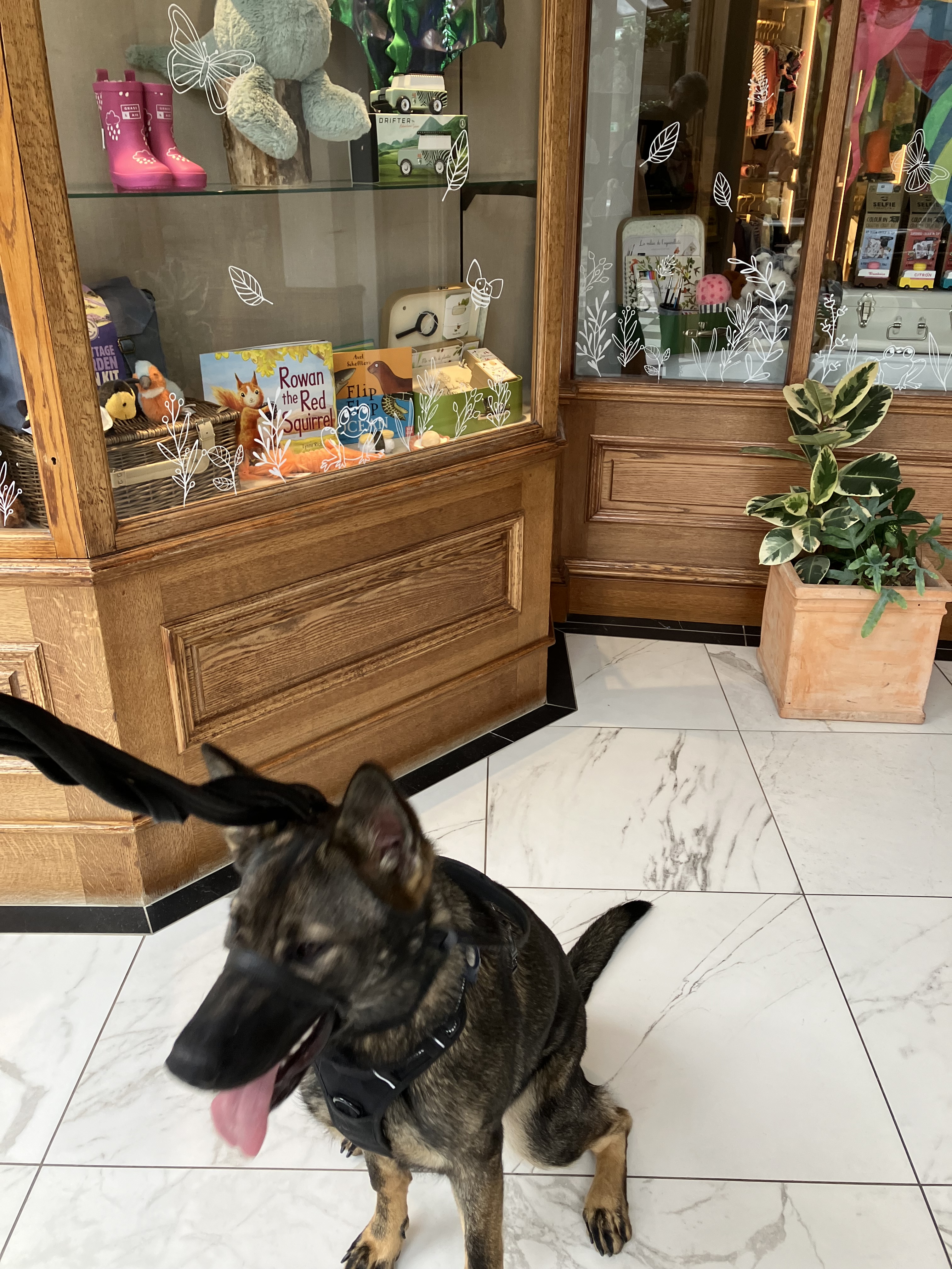 The hotel is big, and beautiful, and it allows dogs (and horses, if you want to take your horse on holiday!) We could have taken Meg into our room (with an additional cleaning charge) but we thought it would be easier to book her into the kennels. I am cautious about kennelling a young dog—it doesn’t take many bad experiences to change a character, and I would hate for Meg to be kennelled next to an aggressive dog. However, this was fine. The kennels were more a room in a separate block, with individual locks, and beds and bowls provided. We were responsible for feeding and exercising Meg, and taking her out so she could toilet. She was the only dog inside, so no danger of being threatened by a dog-bully. Outside, were the hotel’s working Labradors, who barked every time we passed, but that was okay. The staff were friendly, and said how beautiful and friendly Meg is (I suspect they say this to all owners). They lock the kennels at 10 pm, so we needed to toilet her before then, and they unlock at 8am, and take her out so that guests can enjoy breakfast before taking over. That is longer than Meg is usually left at night, so I hoped she would be okay. We exercised her, and then went to prepare for dinner.