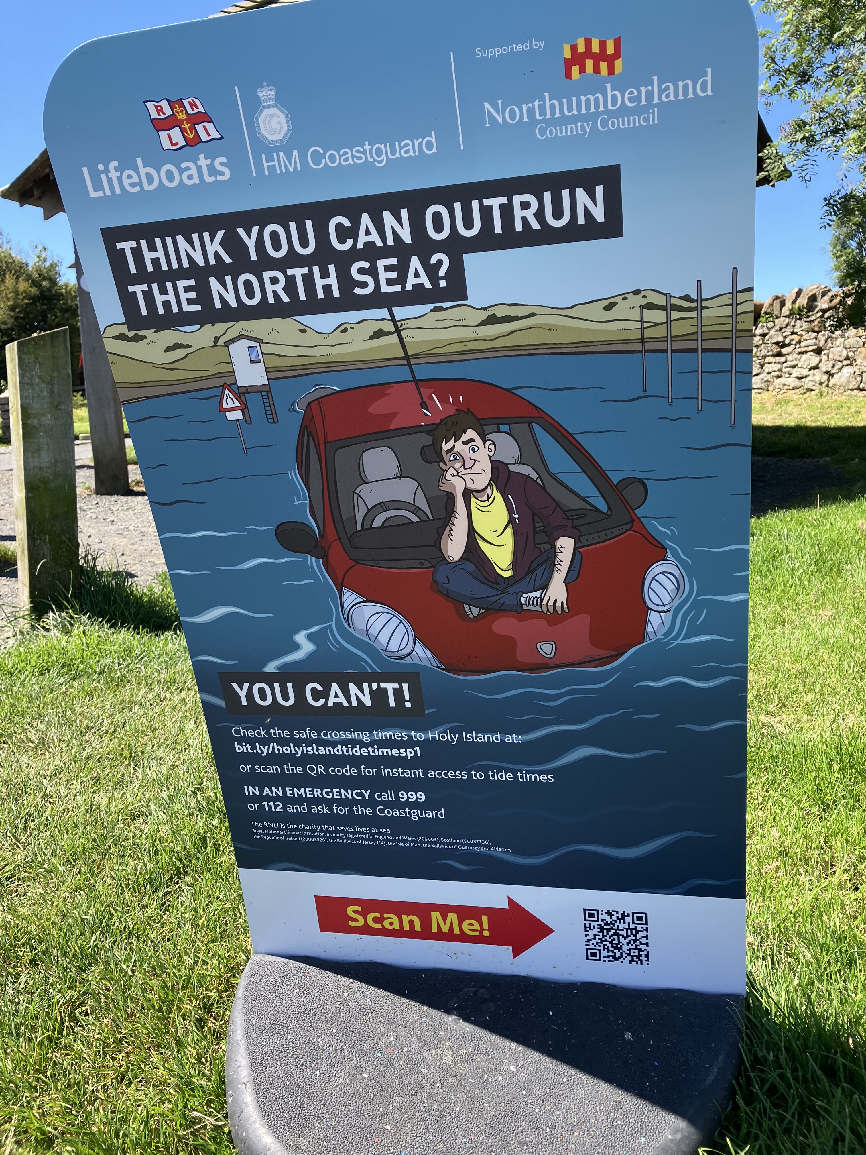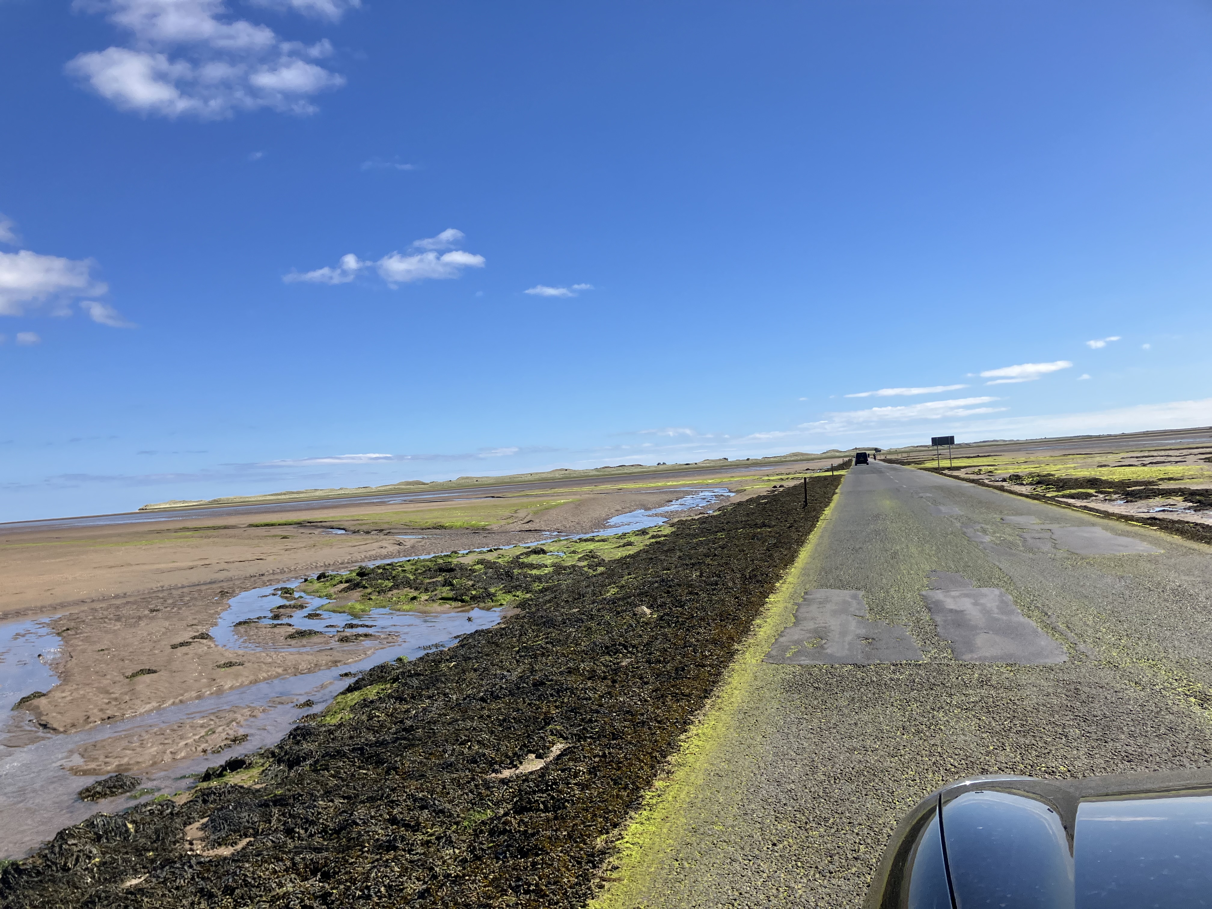 We decided to visit Lindisfarne (Holy Island) which has a causeway we could drive across at low tide. The island is home to a castle (lots of historic fighting of the Scots) and a monastery (where St. Cuthbert lived for a while). I sorely needed a break from Meg, so we checked the timings worked, gave her some exercise before we left and she had a morning in her crate in the house.