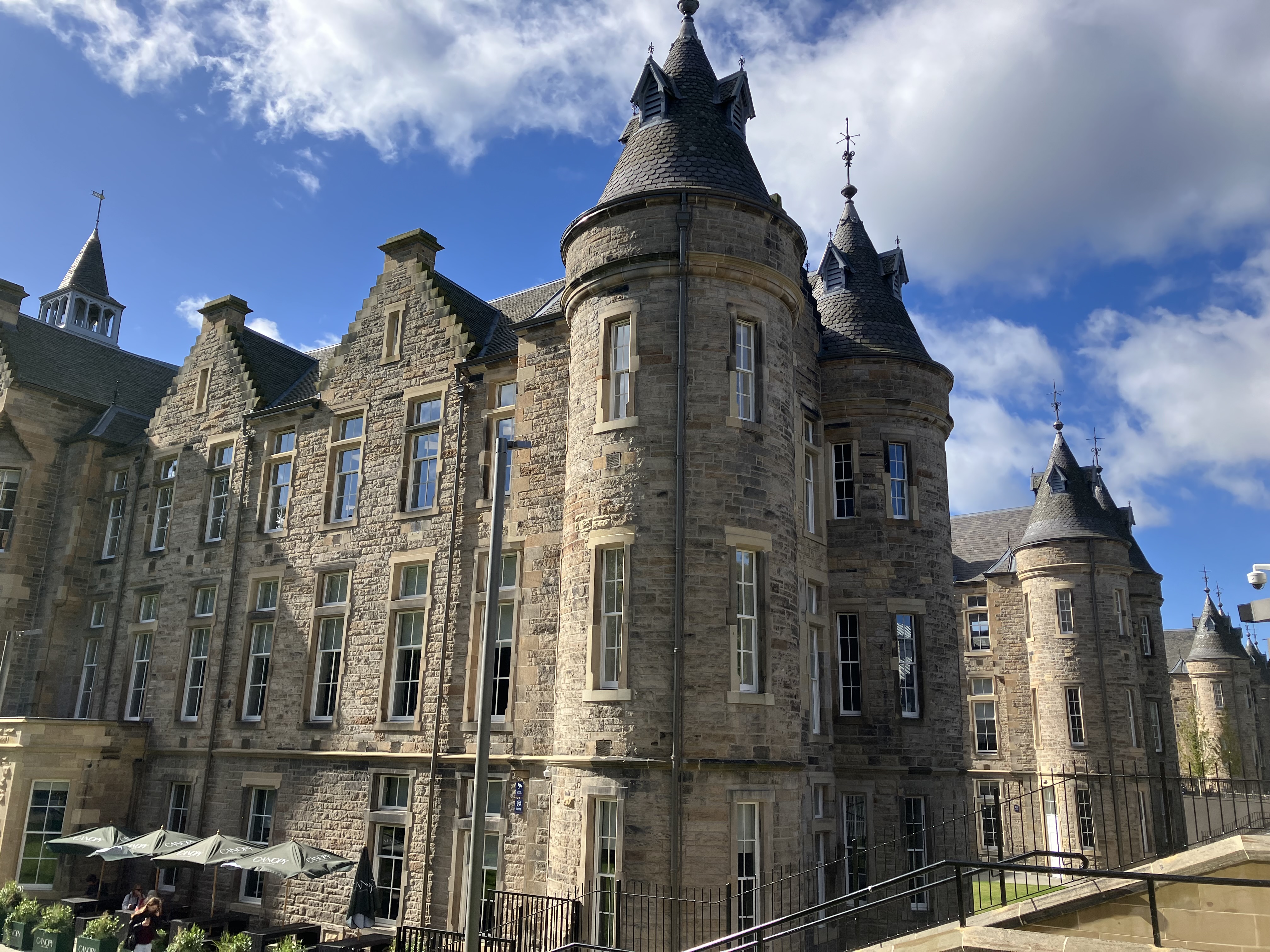 Monday was mainly about learning the building of New College and meeting members of staff and other students. Only the postgraduate students were in the seminars, though we were a mix of Master’s and PhD students. There were some smaller meetings, when I discovered some more PhD students who planned to study remotely, and it was good to chat with them. The day ended with a guided walk, which I’ll describe in another blog. I met Husband and Son for dinner, which made a fun ending to the day. They told me about their day of whiskey tours and sightseeing, and I drank red wine and felt tired.