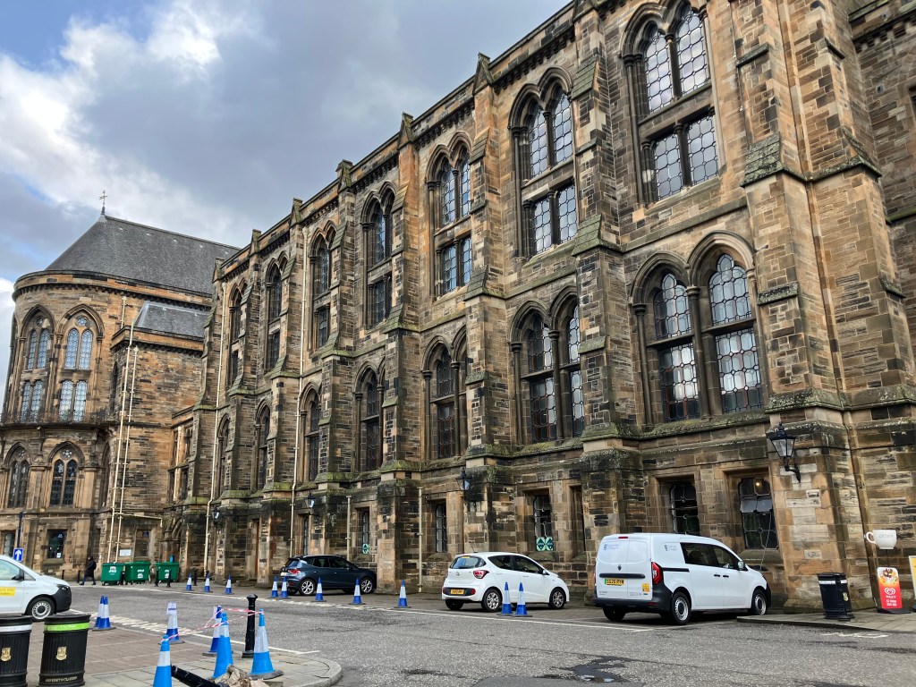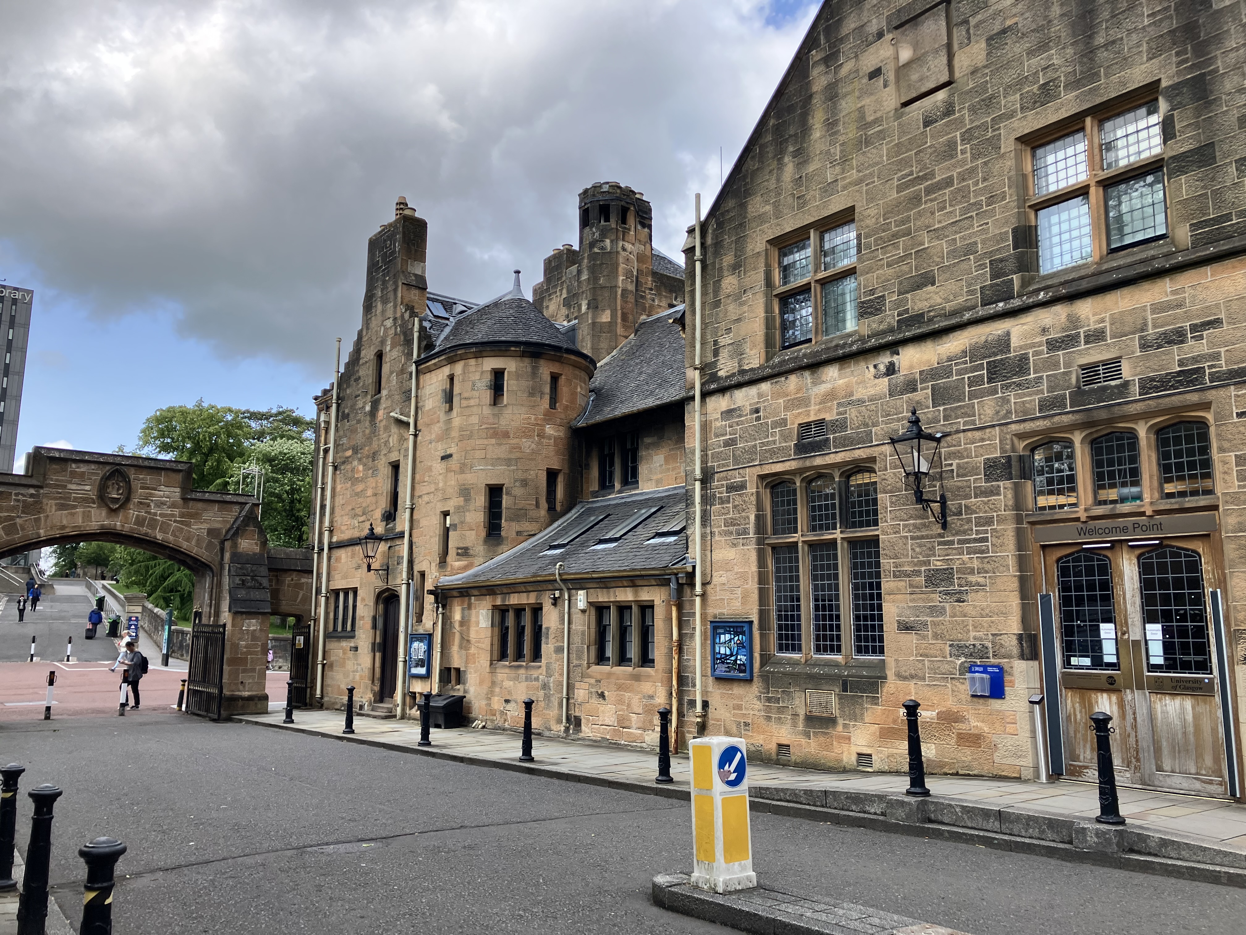 Glasgow University is not easy. It’s incredibly difficult to navigate. The buildings are old and beautiful. I don’t know why but I was expecting them to be modern, with lots of blue glass! Instead, they are weathered stone, and they have turrets and cloisters and squares of green in the quads — but not much in the way of helpful signposts! Never mind, we found the correct rooms eventually.