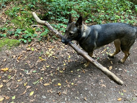 I am trying to break her of this habit (before I lose a finger) and therefore I try to make her ‘wait’ when I pick up a stick, and I growl at her if she grabs a stick from my hand, and I refuse to throw it. Today this happened, and we had a standoff.