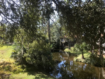 We followed the directions to the condo, which is on Edisto Island. It is amazing! It is in a swamp, but it has been drained, and a golf-course and holiday homes have been built. The essence of the swamp remains, so there are trees dripping with Spanish moss, and pools of water (with ‘beware of the gators’ signs) and the houses are all on stilts. Our condo is up in the trees, and we look down on pools of turtles sunning themselves, and deer wandering around the golf course, and great white birds swooping overhead. I love it, it’s so much nicer than a hotel in a city.