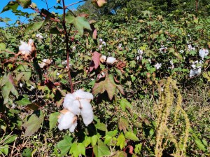We drove past fields of cotton, fluffy white puffs bursting from crunchy pods on dead-looking plants. Some had already been harvested, and was waiting in round bales, like giant swiss-rolls, waiting to be collected. The weather was hot (at last) and the air was full of tiny flies.