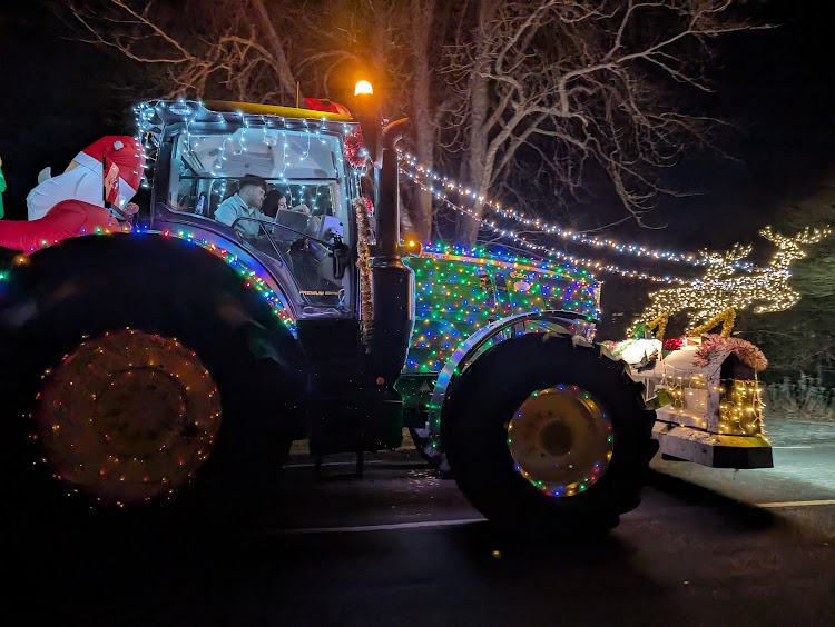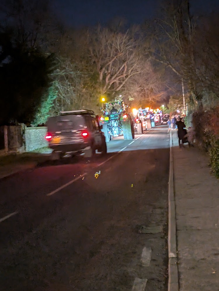We went to an event this week which would suit any age—the annual town Tractor Run. I’m not sure if other rural towns do this, but where I live, every year all the local farmers decorate their tractors with lights and tinsel, and parade through the villages honking their horns and flashing their lights. It’s brilliant! I dragged Husband along this year; I could tell he wasn’t keen as we stomped through the dark lanes, and risked the cars whizzing along the main road, to the nearest viewpoint. There were lots of other people—families and couples and people walking their dogs. My town is good at community events.