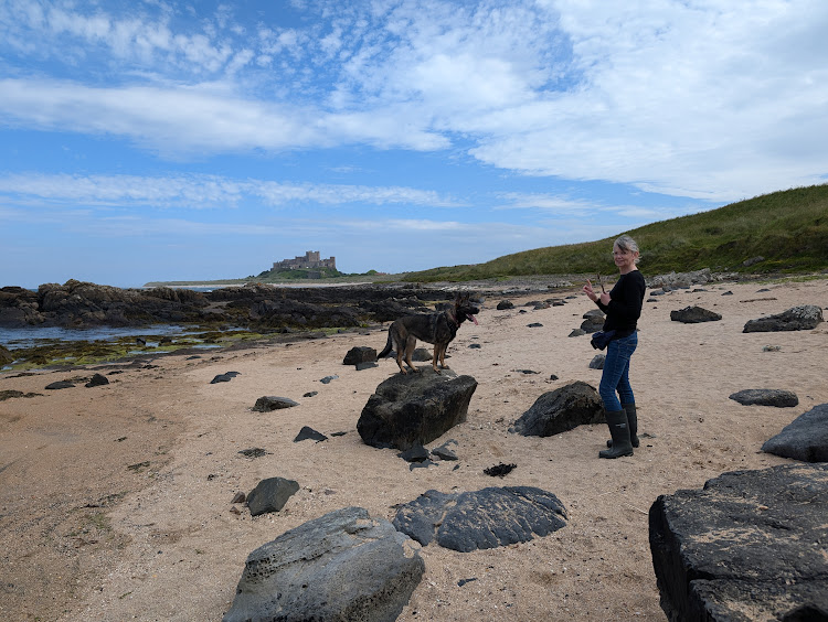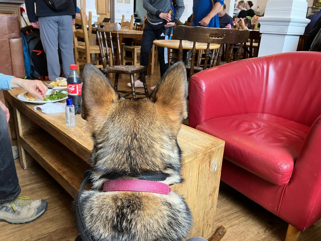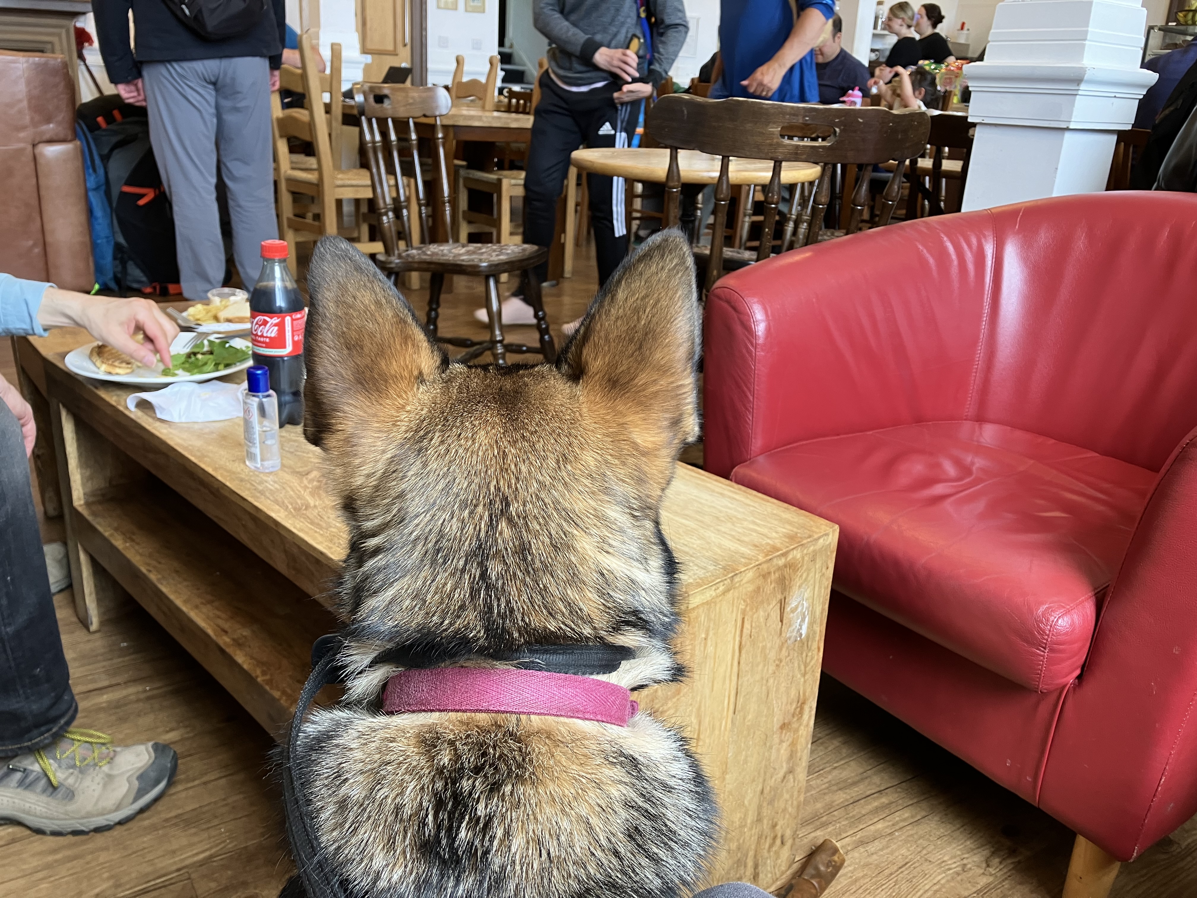 I started tempting her up and down the stairs with her ball. She’s hesitant, but getting used to using stairs in the house. Mostly, she will do anything for a ball. I still try to hand-feed her most of her food, and practise calling her, and teaching her to walk to heel. It’s all great unless there’s a distraction, and then she is still terrible. I can get her to sit near the main road and concentrate on a treat rather than the cars, but not yet in our lane. She still hares up and down the garden fence if a car goes up the farm lane.
