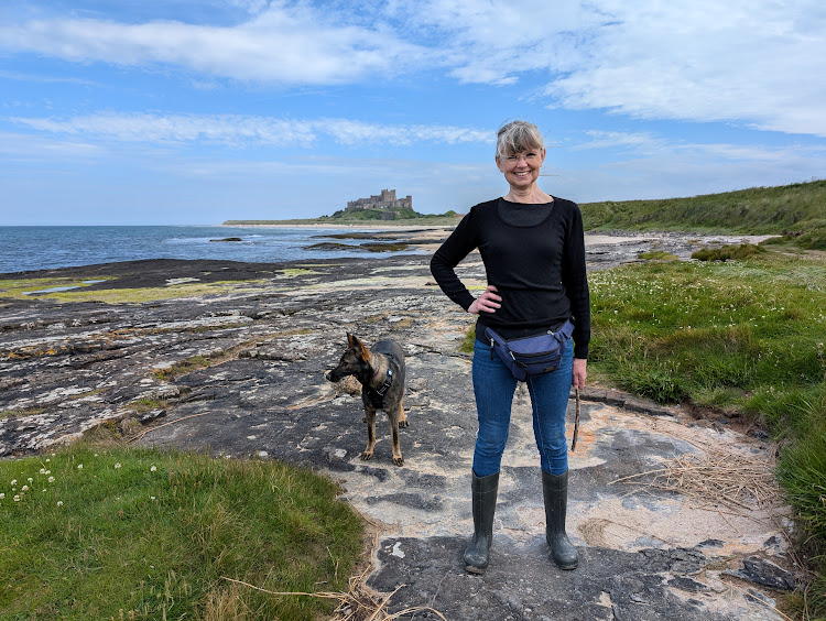 Walking is easier because I don’t attempt to walk near roads. We go to the woods, and she stays near me, and comes when called (even if I do have to shout ‘Stick!’) so putting her back on the lead is reliably do-able. She will do anything for a stick.