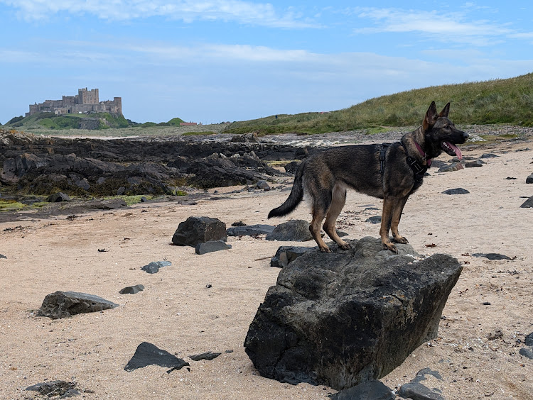 On 31st July, we went to meet someone at the airport. I brought Meg, thinking it would be excellent training to walk through a crowded airport. It didn’t quite go to plan, because although she walked into the lift happily, they were broken, so we had to use the stairs. When we entered the stairwell, Meg froze. Four paws on the ground, not going anywhere. We didn’t have time to teach her how to use stairs, so Husband went to the arrivals hall, and I walked round the car park with Meg. It was still good training, walking past lots of people with luggage and moving cars, and going in and out of the stairwell. But not as good as I had hoped. We will work on stairs, and spooky stairwells.
