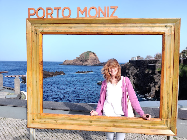 Our last stop was Praia da Calheta. This was a busy town, full of people, cars trying to park, cafes and supermarkets. There was a small marina, with little boats bobbing in rows, and a long promenade with palm trees and cafes. There were also beaches, with yellow sand hauled from Africa. Despite the cold, several teenagers were swimming, their squeals piercing the air. Steep cliffs bordered the coastal road, and we sat in a cafe, sipping espresso and watching little black and white birds nesting in the rock while seagulls swept past looking for food.