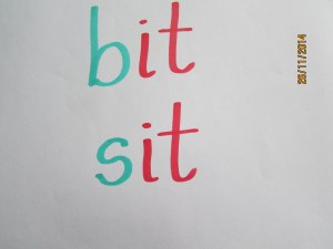 It can be extended by the teacher returning to the classroom in the morning and making a sentence with the words, such as : “Kit wanted to sit, but a nit bit her, so she had a fit.” You can do the same activity at home. If you write a sentence with the words, put it on the fridge and your child can return to them throughout the day and read what was written. Obviously, change the letters used each time, so the child begins to build up a good knowledge of letter blends. You can also start with initial sounds, such as ‘br’ or ‘ch’ and change the story accordingly.