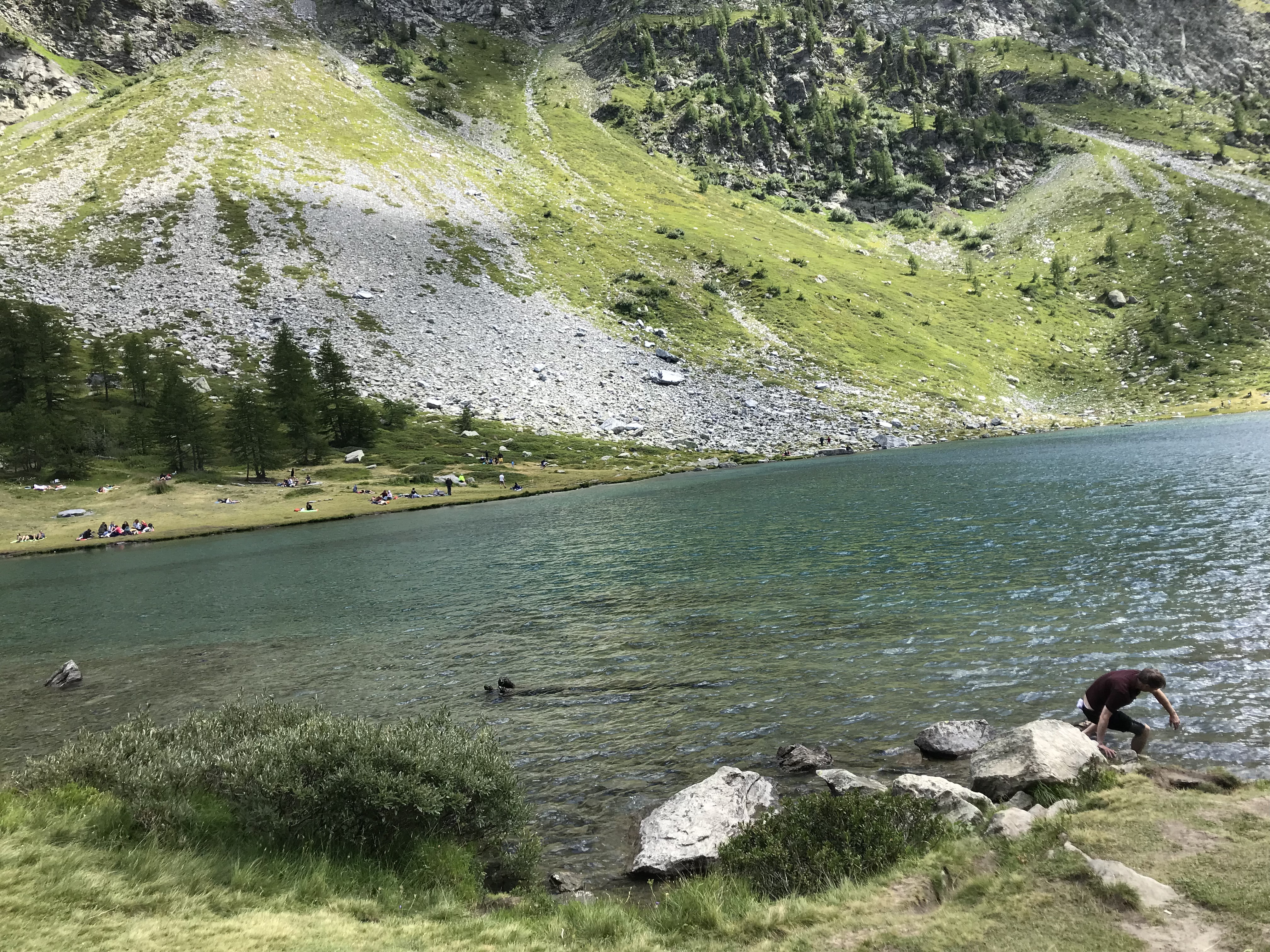 We bought drinks in the empty market place at Le Championnet. This was a mistake, as the prices were inflated, and the man dumped ice in the glasses with his dirty fingers.