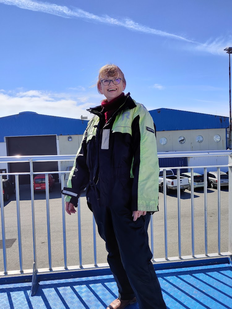 When on board, we were then advised to wear warm overalls. I had already dressed warmly, but decided to take their advice (good move). They had a supply of overalls below deck. I then rather resembled a whale myself.