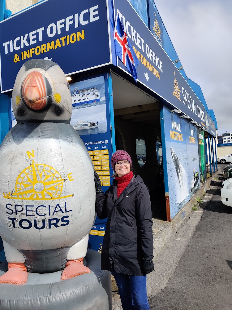 Reykjavik harbour has several companies offering whale watching tours. Each one had marvellous photos of a whale’s tail next to a boat of excited tourists. But I had learnt from the puffin trip, that sometimes you are not as close as you think you will be, and clever photography can be misleading. Also, were these the best photos from 3 years ago, and the chances of seeing a whale today very slim? We went to ask.