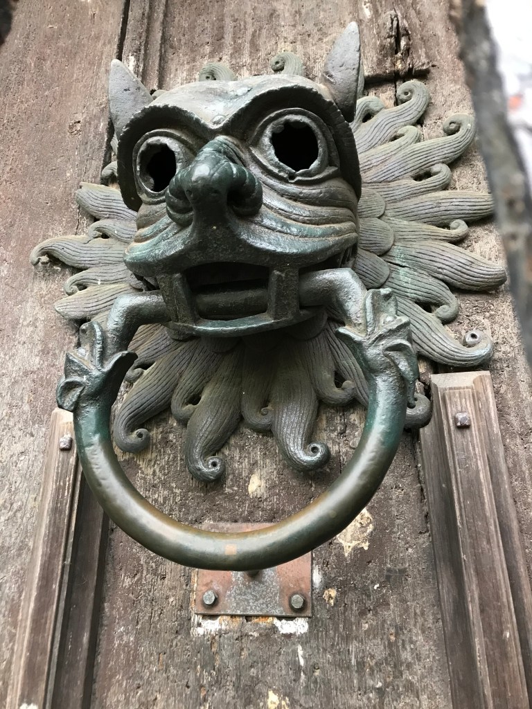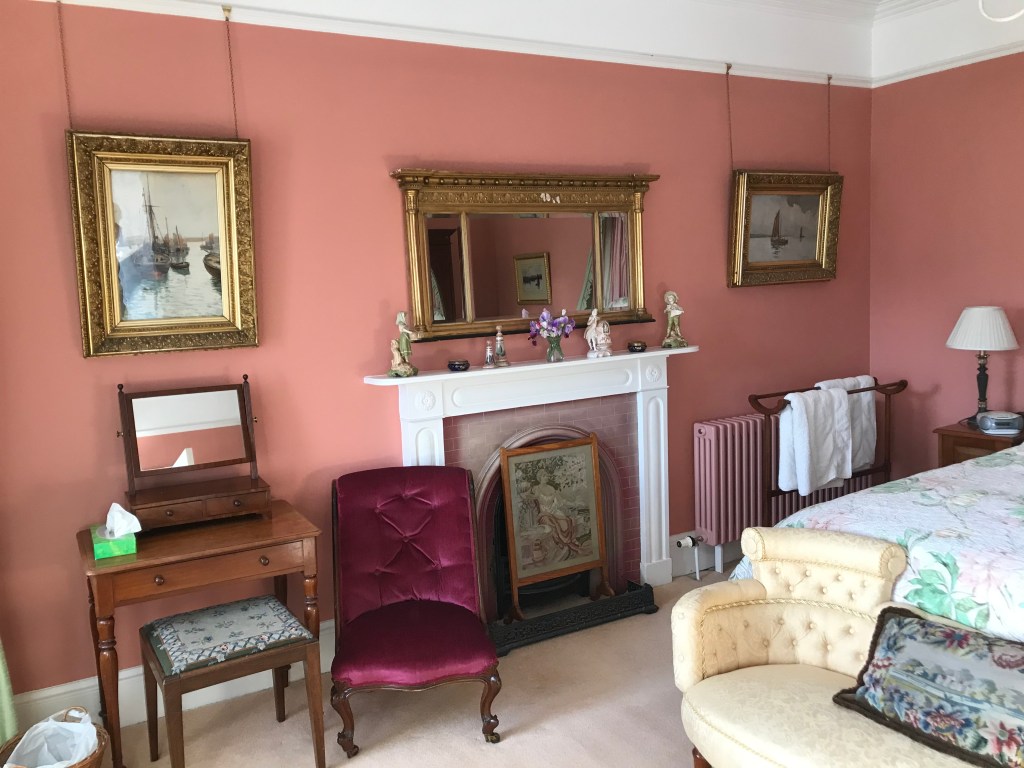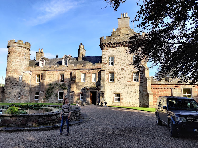 While staying at Thornton Castle, we visited Dunnottar Castle—which is a ruin and is my absolutely favourite castle in the whole world. We visited on a day full of sunshine and wind, and as we left the car park we could see a wind farm which looked as if it was floating above the horizon due to the mist. The castle was reached via steps which drop down from the cliff and then rise steeply to the spit of land housing the castle. The cliff edges are pitted, with large pebbles held by rock, which we were told is called ‘pudding rock.’ It is gradually eroding, so visit the castle quickly, before it tumbles into the sea.