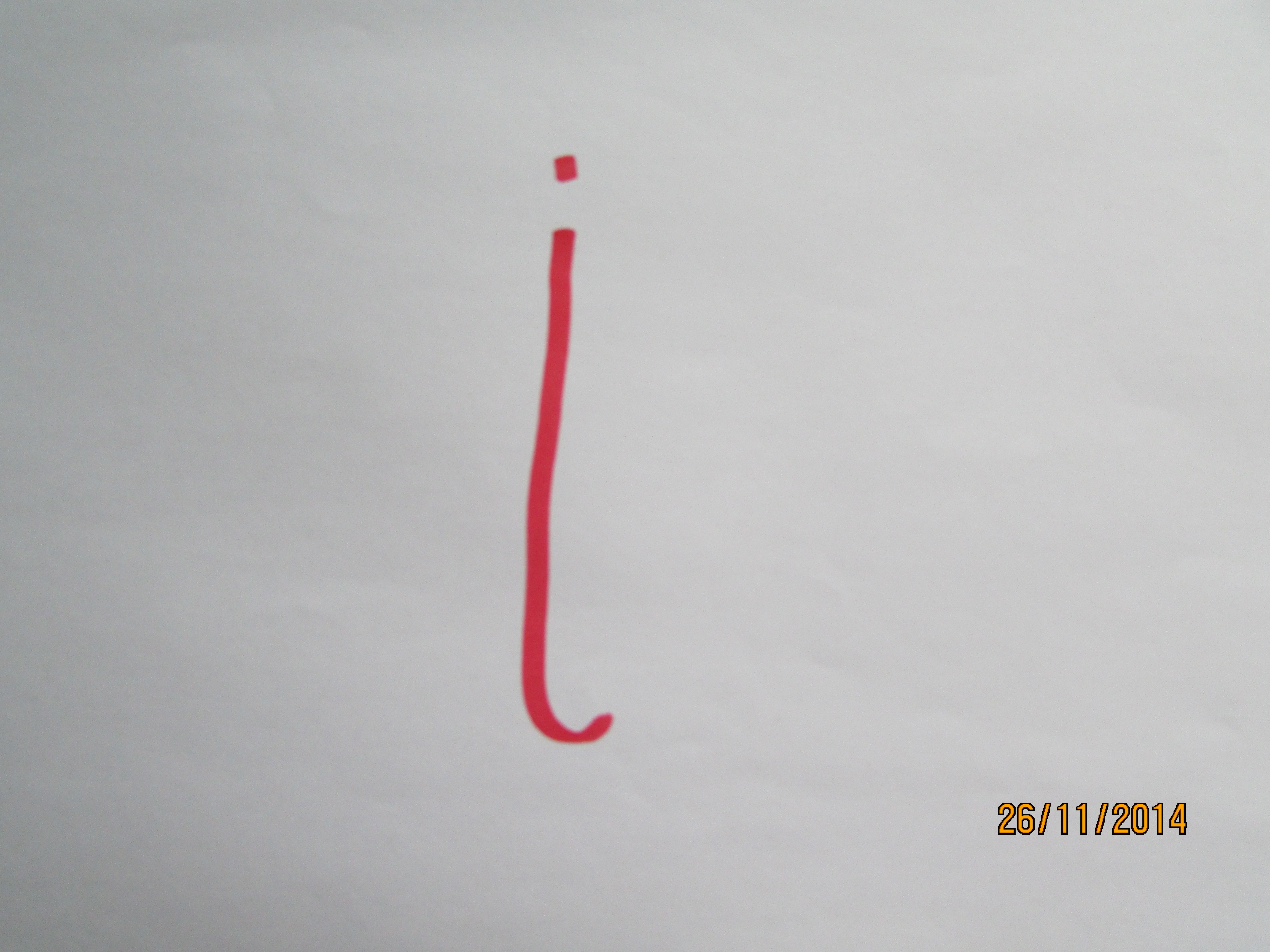 Start in the middle, top to bottom, with a dot on top. Then she wrote a ‘t’. Start up high, top to bottom, then across the middle. She had written ‘it’. She was very excited!