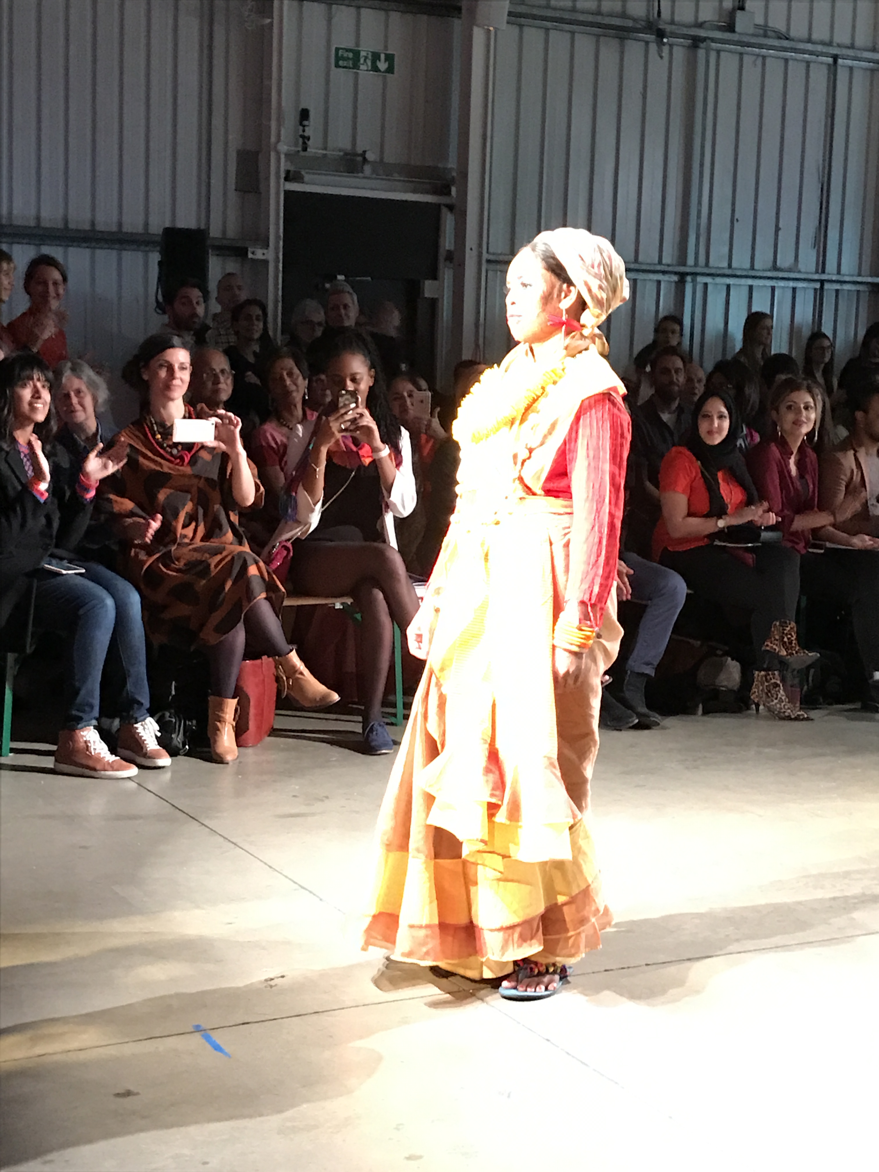 When later, I looked at the selfie, I was surprised by how many wrinkles I have. I never see them normally, when I look in the mirror, I sort of see the face I’m expecting to see, which I guess is an echo of the young me. But I’m not young, I’m 52, and I have lived a lot and laughed a lot, and my face has wrinkles. It is not a model’s face, it has not been airbrushed, but it’s mine. The wrinkles don’t matter. This is relevant when you consider that every model in the fashion show was the victim of an acid attack. They would probably have loved to have a few wrinkles on their faces, a few less scars.