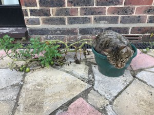 Meg didn’t eat anything that night, but the next morning I wet her dried food so it was soft, and she ate it all. I tried to look in her mouth, but all I could see was that under her tongue was swollen. She didn’t let me move her tongue to see if there was a splinter. I decided to wait another couple of days, because I couldn’t see that the vet would be able to do anything without a general anaesthetic and I am unkeen to allow those unless strictly necessary. Gradually, Meg improved, she stopped being subdued (that didn’t last more than a few hours) and began to use her mouth normally.