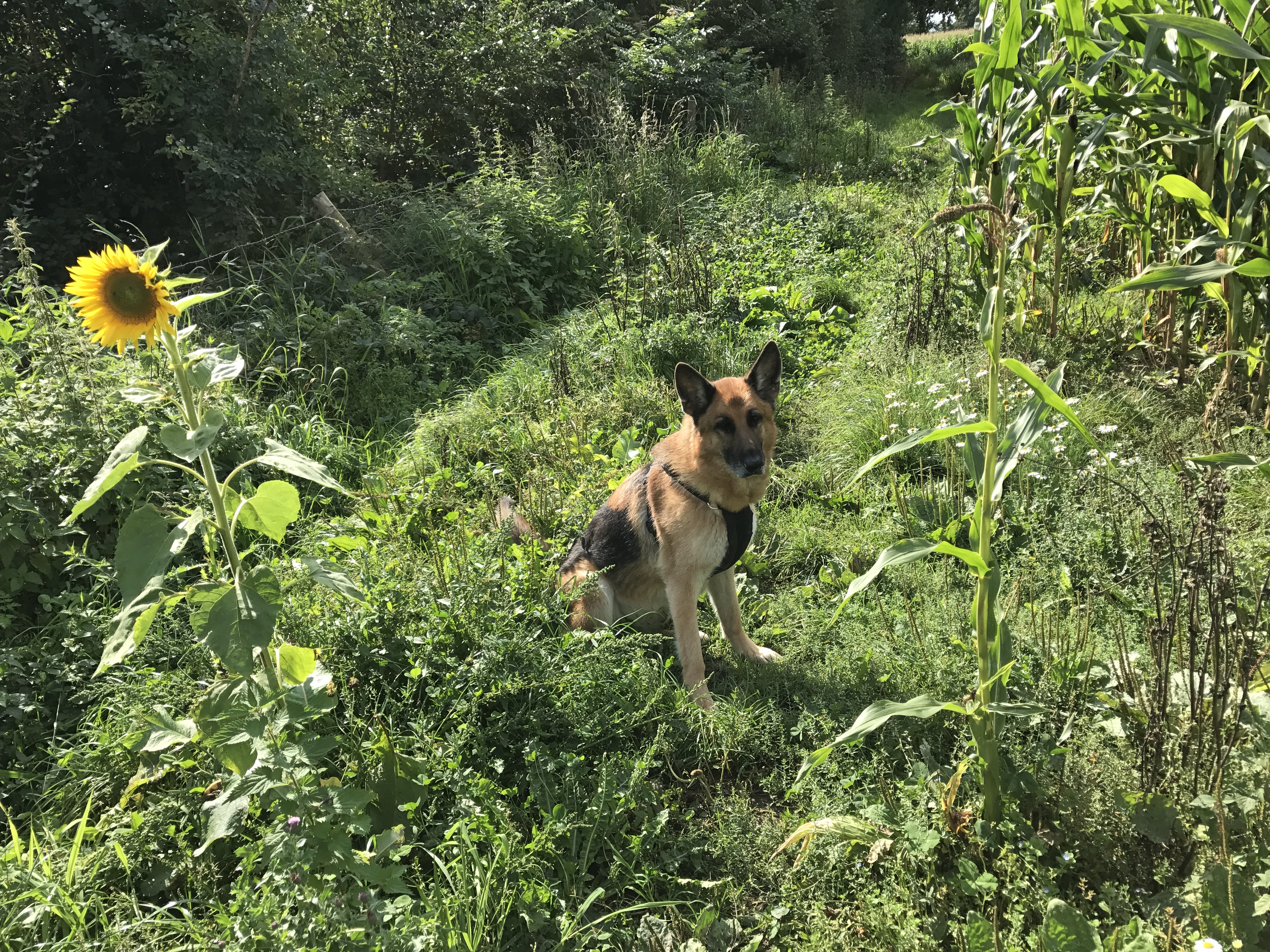 We had another Bank Holiday weekend, and this one had nothing planned so we chilled at home. On the Sunday I was feeling lazy, and the view from upstairs showed the field next to the house was freshly mown, with no animals, and the sun was shining—so we thought, why not walk Meg there for a change? What could possibly go wrong?